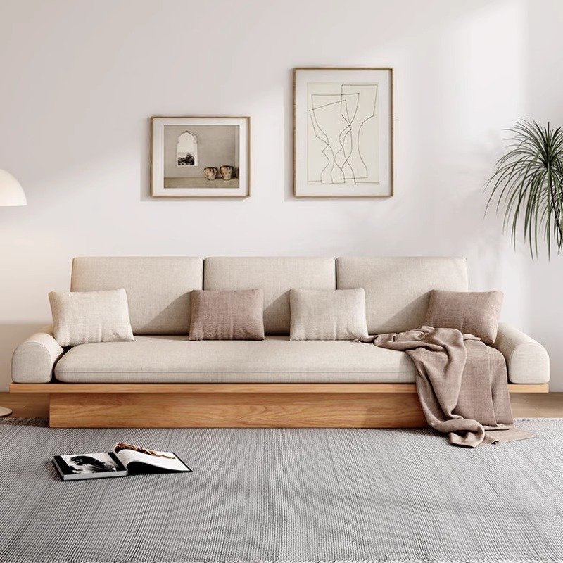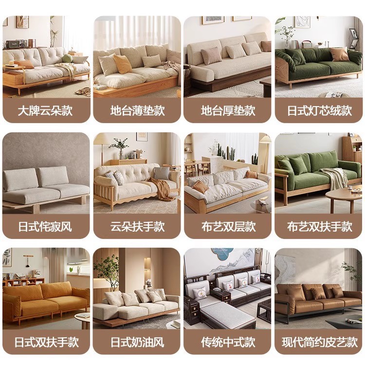侘寂风格实木沙发日式原木风三人位现代简约北欧储物组合奶油风