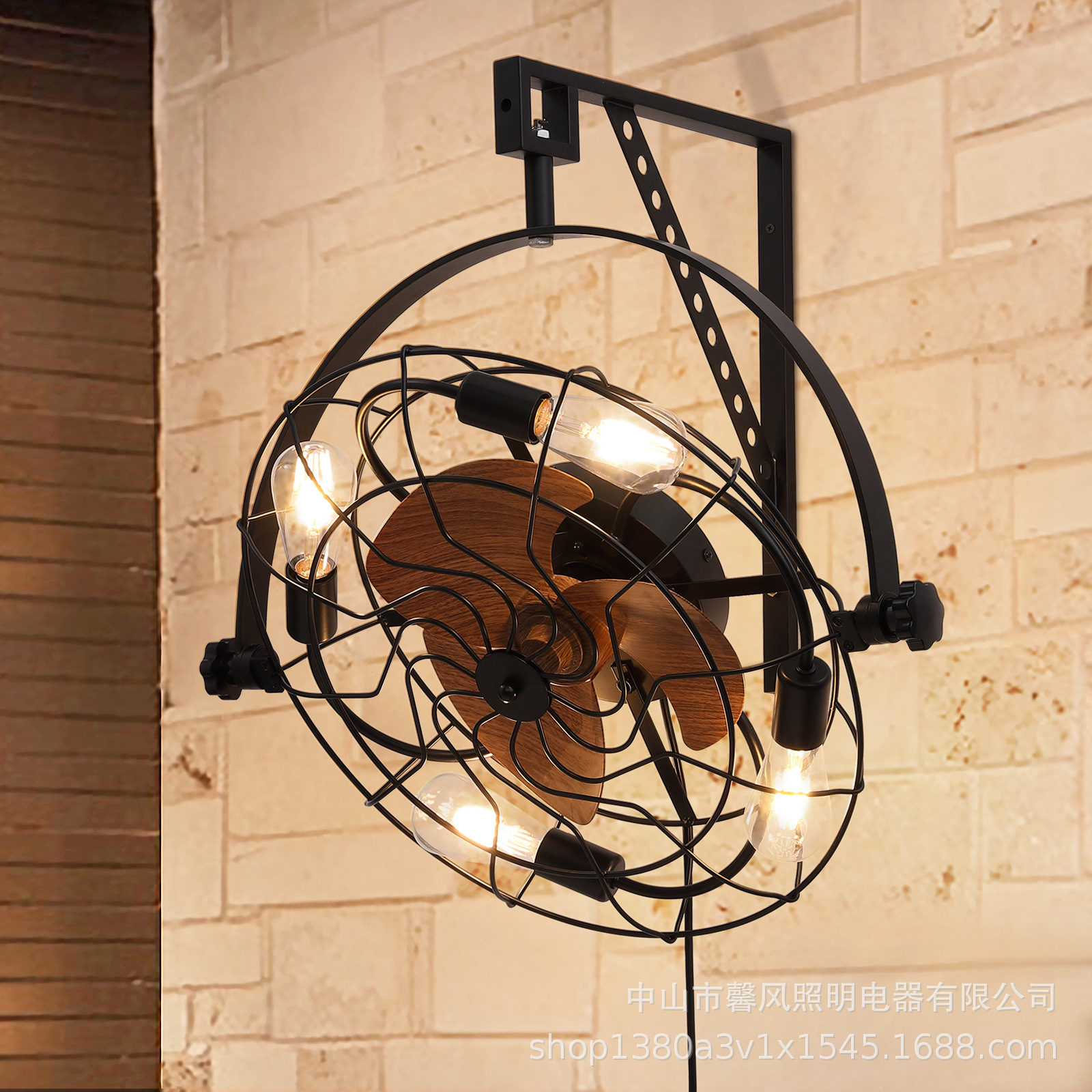 美式风壁挂风扇灯跨境专供货源家用客厅插墙壁式铁艺风扇灯批发