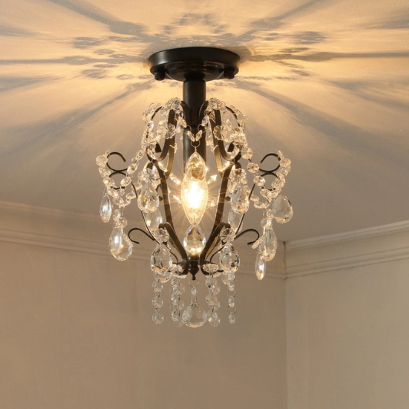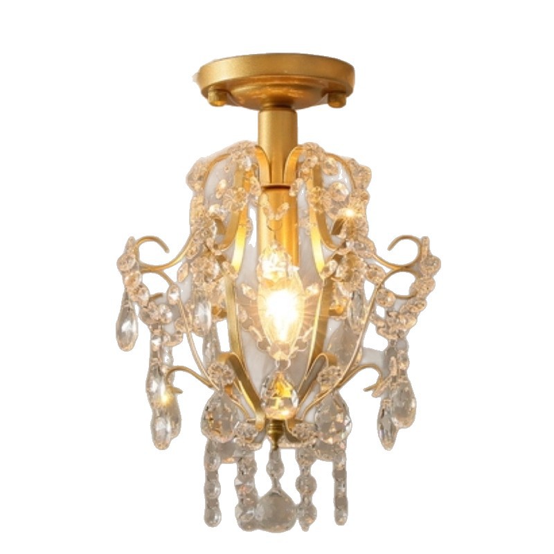 法式水晶吸顶灯复古玄关楼梯轻奢美式黑色吧台过道氛围入户铁艺灯