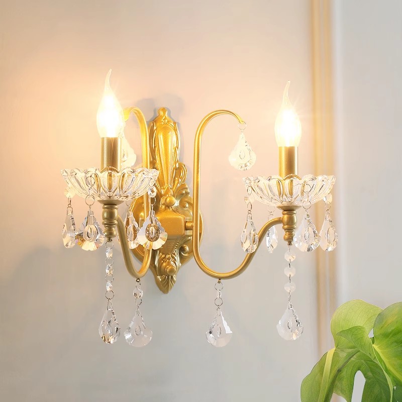 法式欧式复古水晶壁灯 美式法式卧室客厅床头过道玄关铁艺壁挂