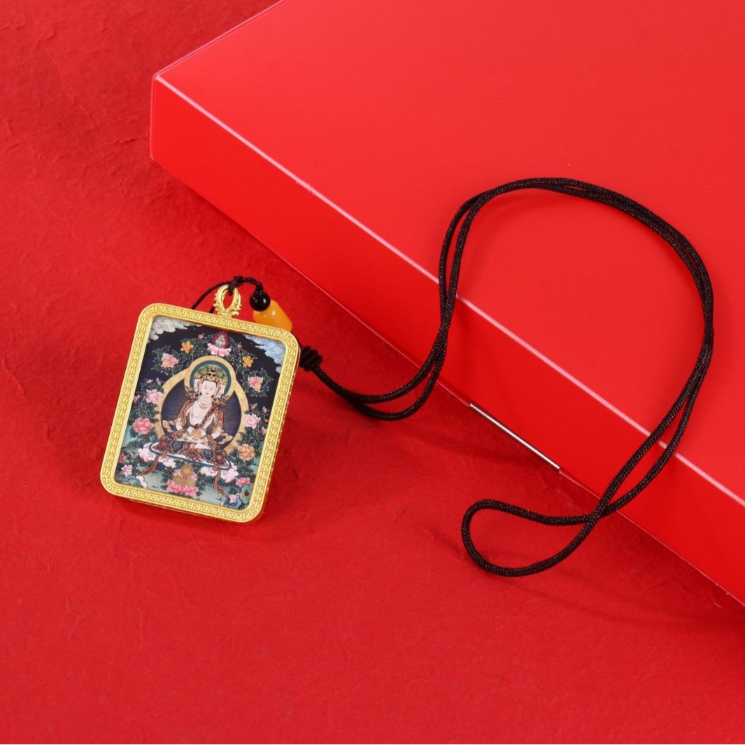 藏式唐卡吊坠普贤菩萨黄财神佛牌项链绿度母黑财神八大守护神唐卡