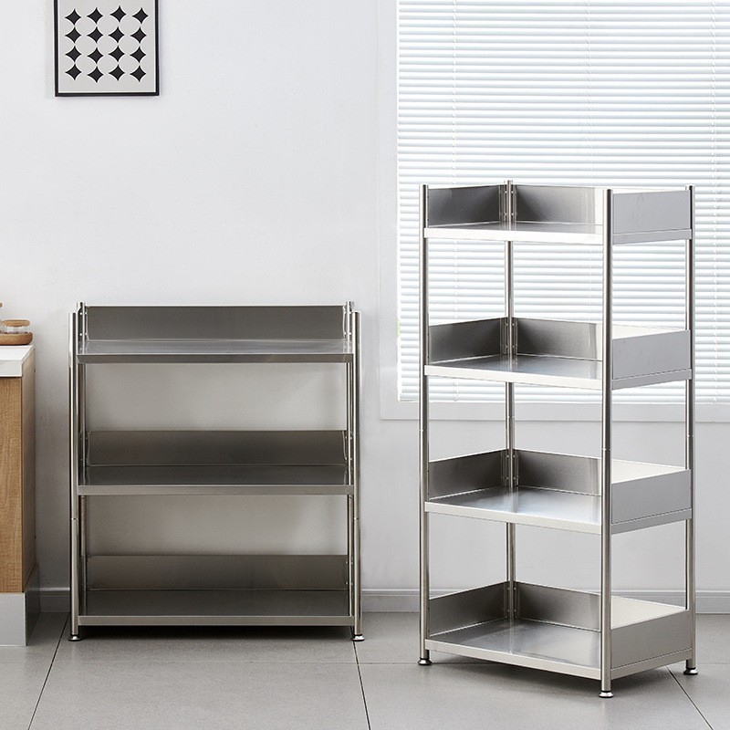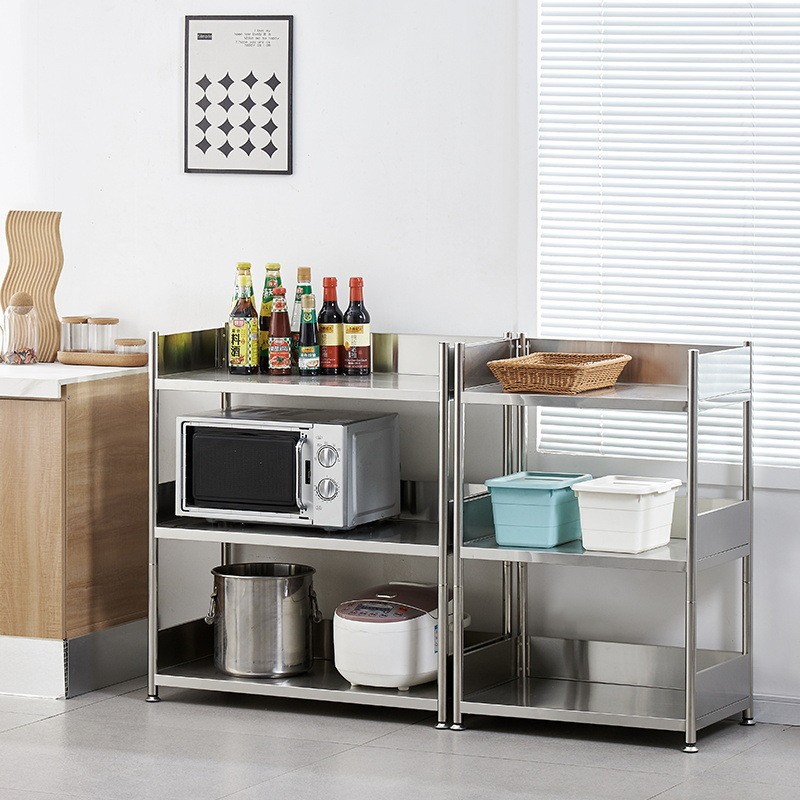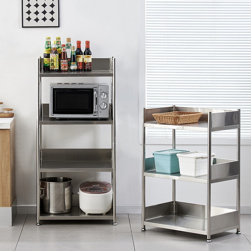 四柱453加厚201不锈钢厨房置物架落地多层微波炉多功能收纳架储物
