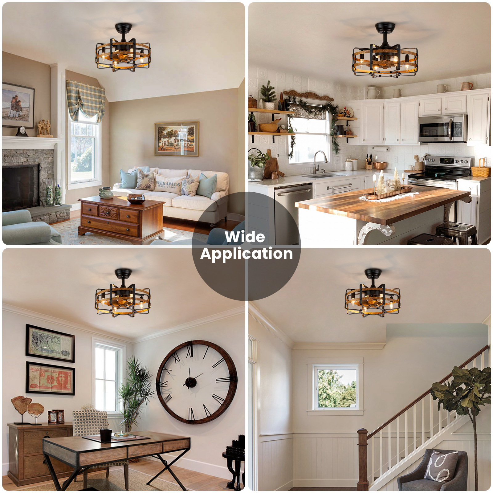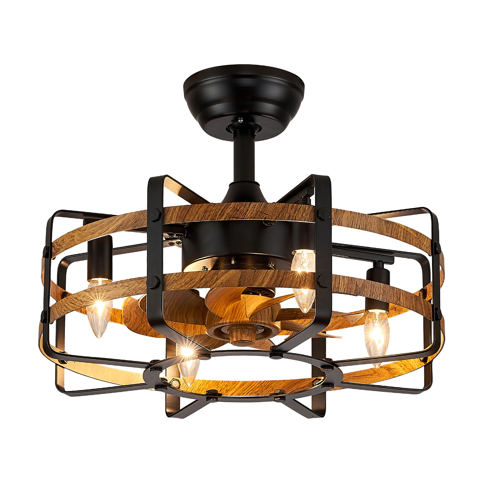 跨境专供复古美式吸顶风扇灯铁艺木纹客厅卧室风扇灯亚马逊热销