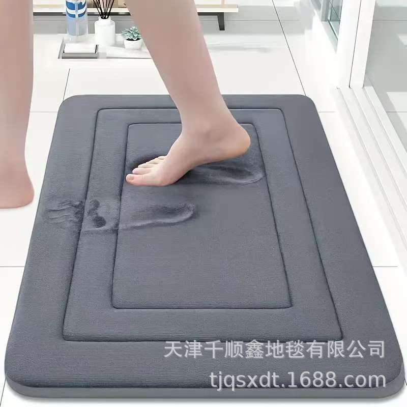 temu浴室地垫加厚记忆棉卫生间门口防滑垫珊瑚绒脚垫厂家可贴标