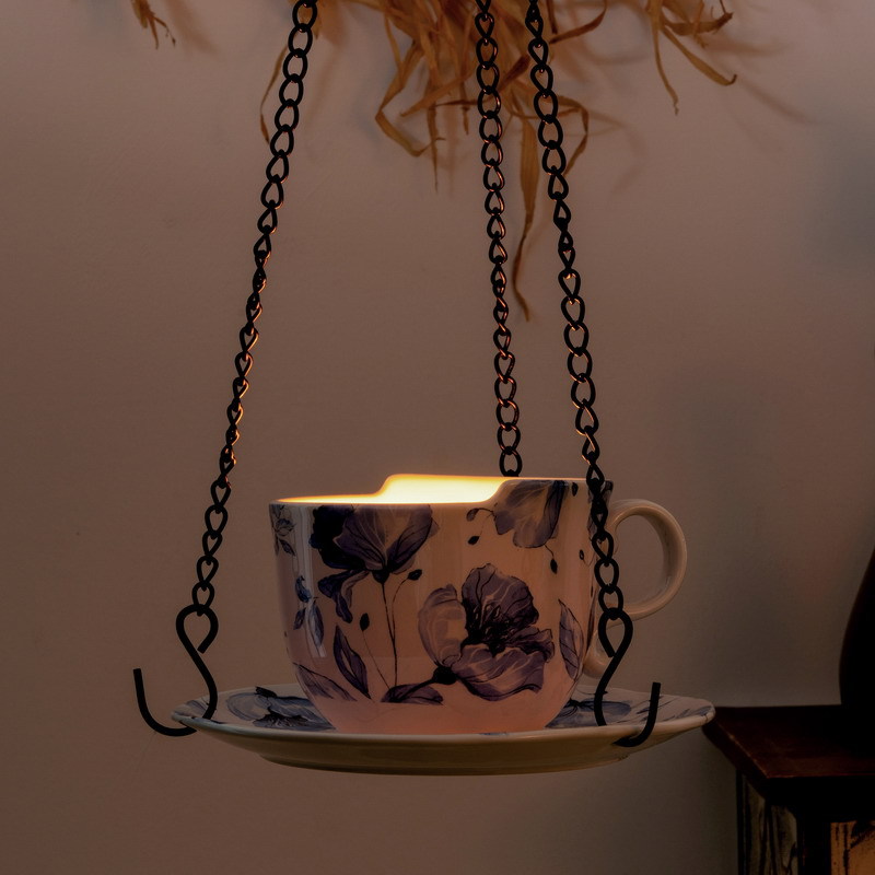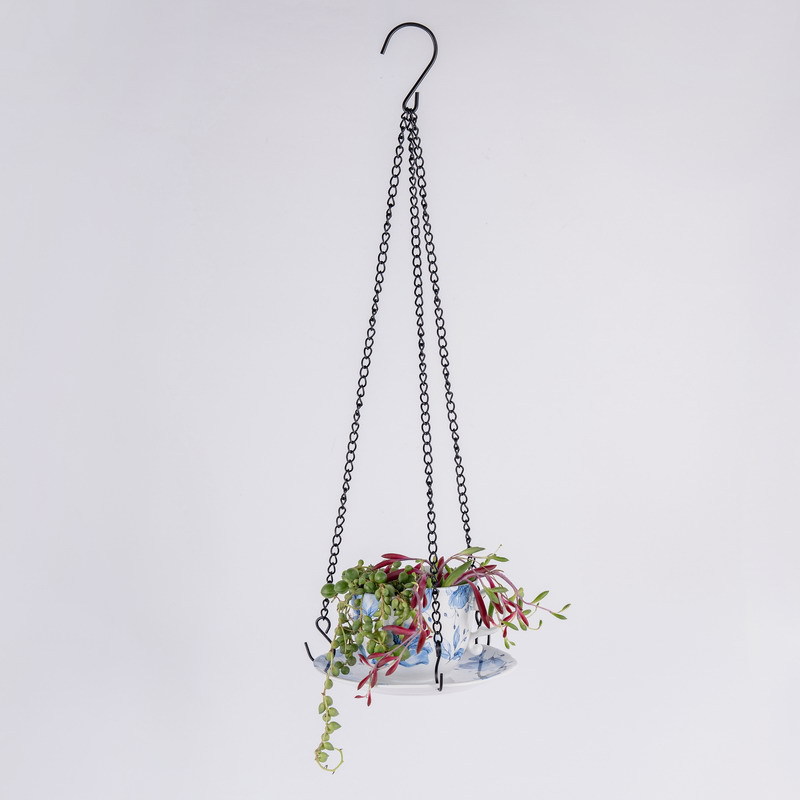 原创杯碟造型陶瓷吊盆多肉花器 多用途挂钩花盆悬挂式小花盆跨境