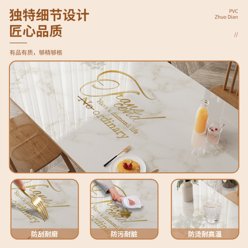 软玻璃桌垫防烫隔热餐桌垫防水防油免洗pvc桌布轻奢高级感茶几垫