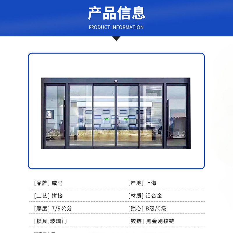 定制钢化玻璃门防撞隔音适用于银行商铺等场所自动推拉门智能感应