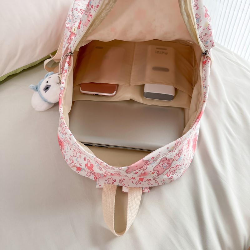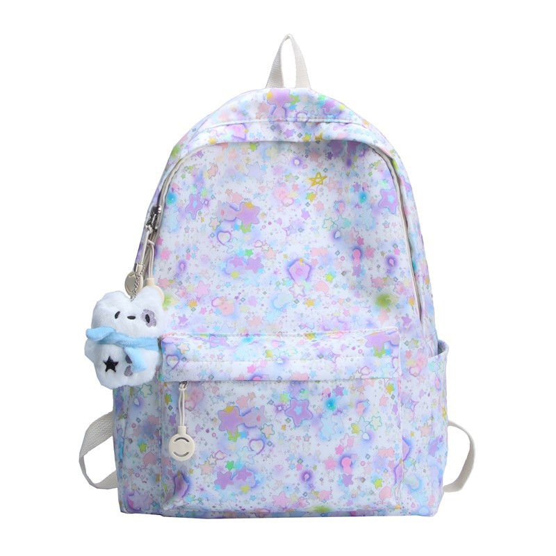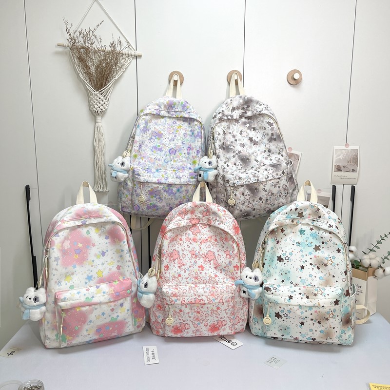 高颜值学生书包扎染设计潮流印花大容量背包小星星碎花双肩包女