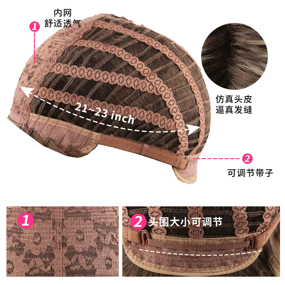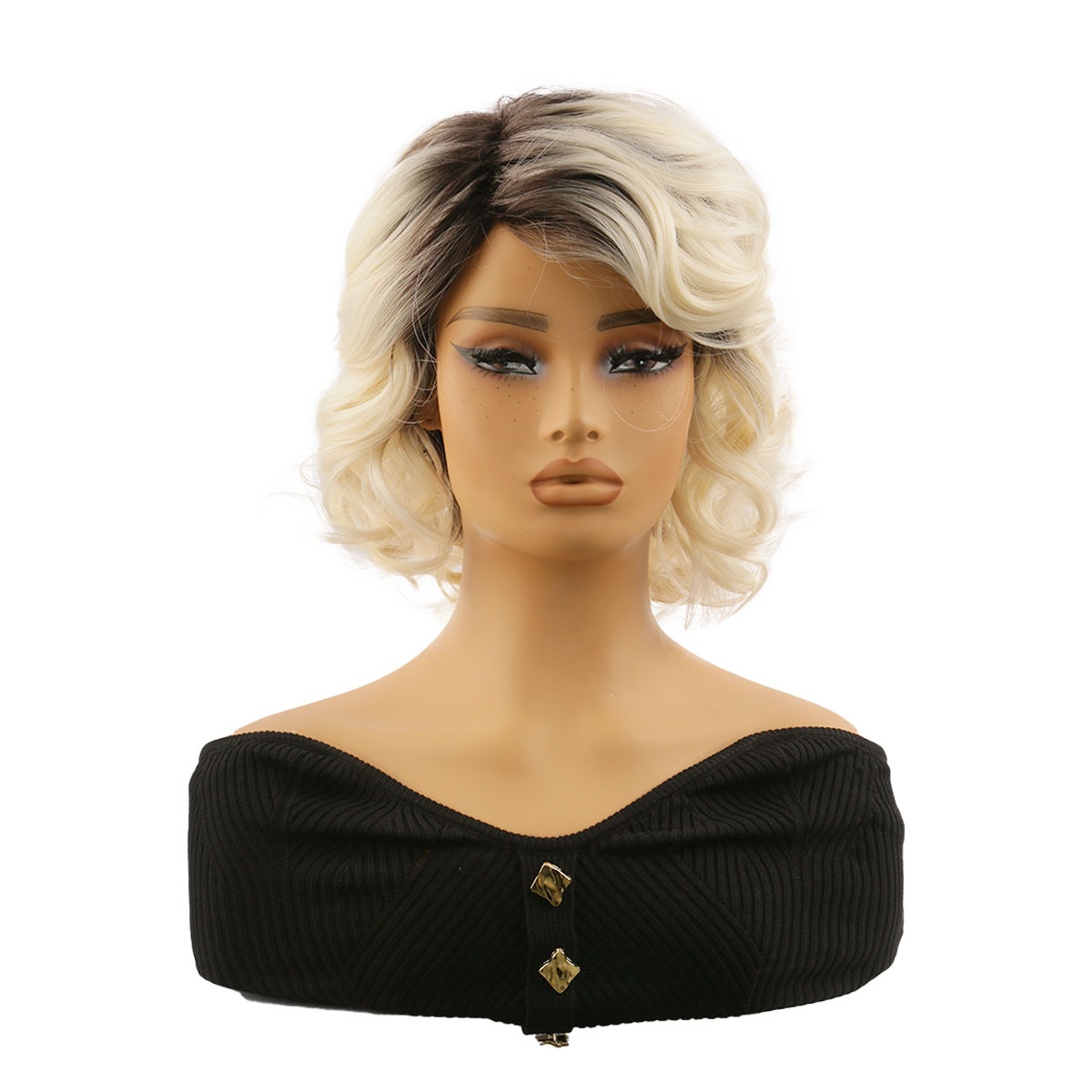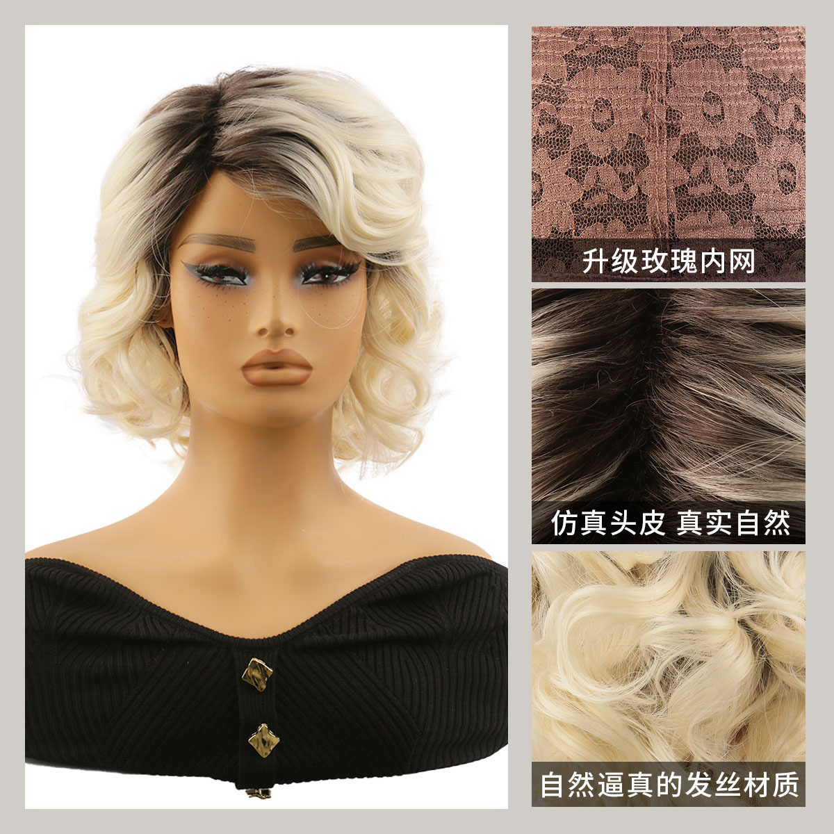 跨境外贸欧美假发女士短卷发偏分梨花烫金色整顶头套古典厂家批发