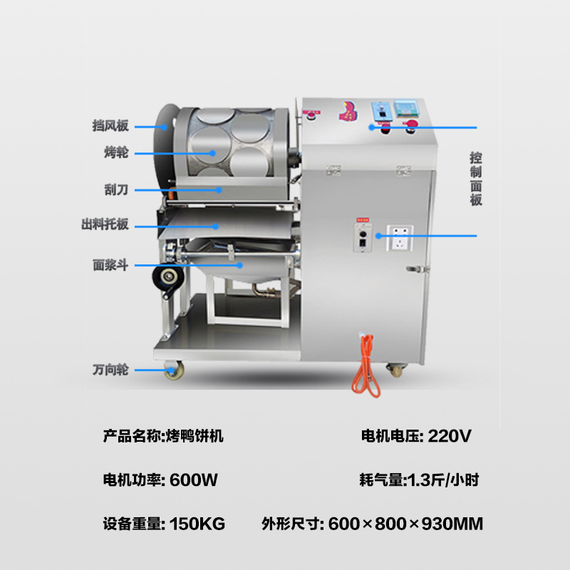 全自动立式春卷皮机烤鸭饼千层蛋糕皮丝娃娃机商用烤鸭饼机