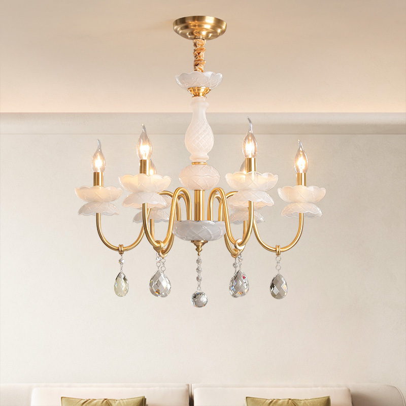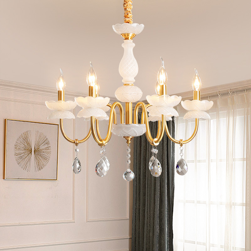 中古奶油风美式枝形全铜餐厅吊灯奢华大气法式别墅客厅卧室灯新款