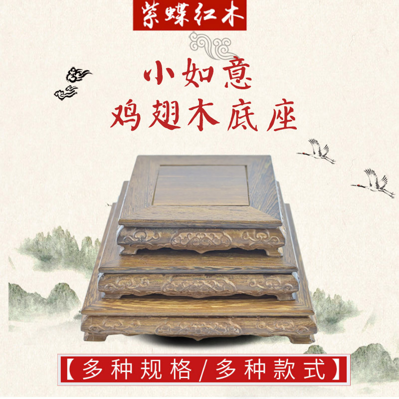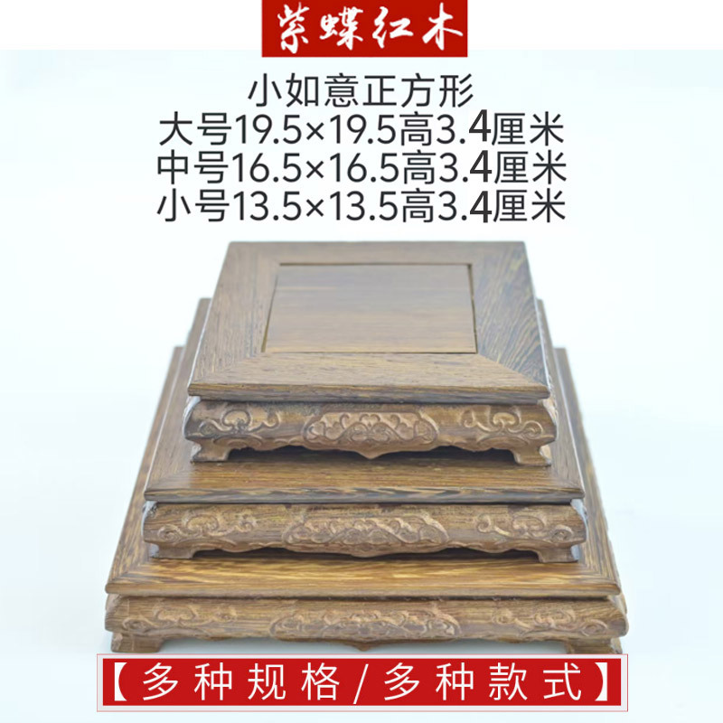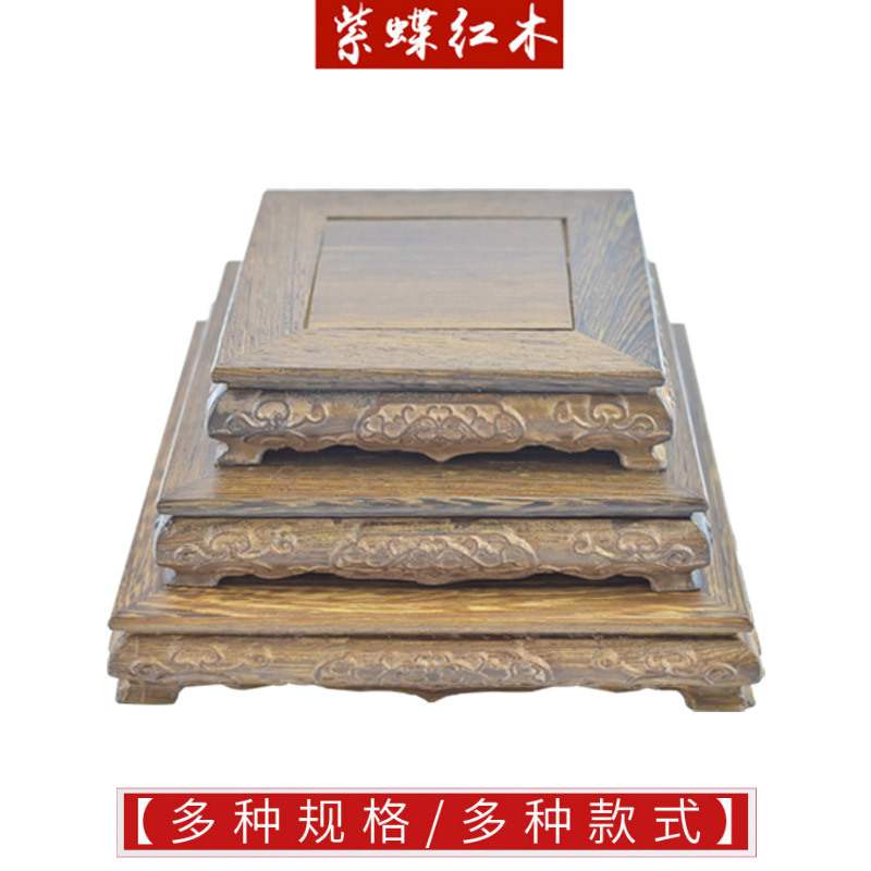 实木质花盆景摆件底座鸡翅木正方形紫砂壶茶壶瓷器镂空雕刻木托架