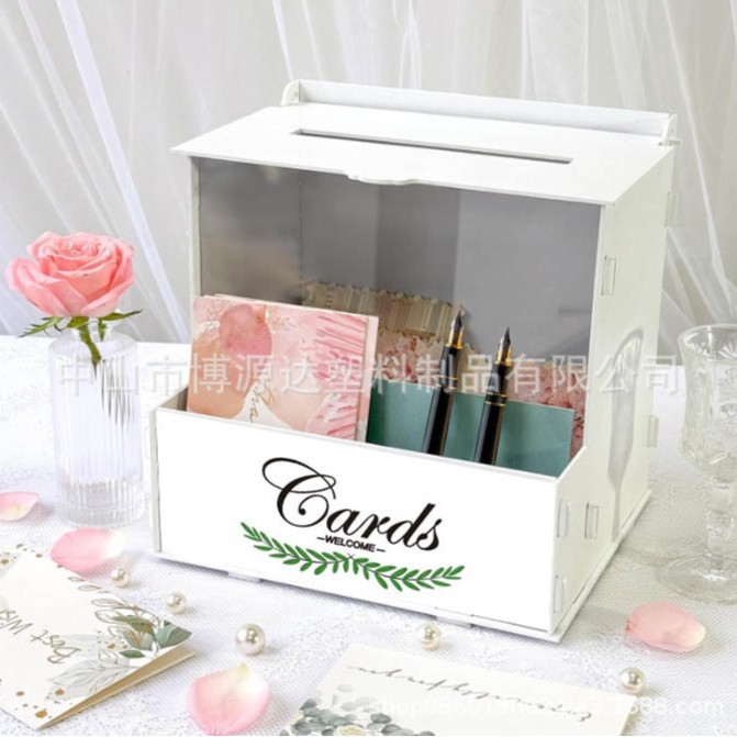 跨境定制木制婚礼卡片盒白色带花槽婚礼礼品卡盒