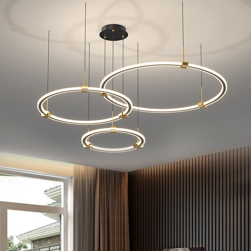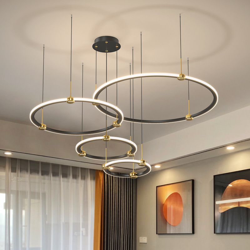 后现代轻奢客厅圆环吊灯复式中空设计师样板房意式简约餐厅卧室灯