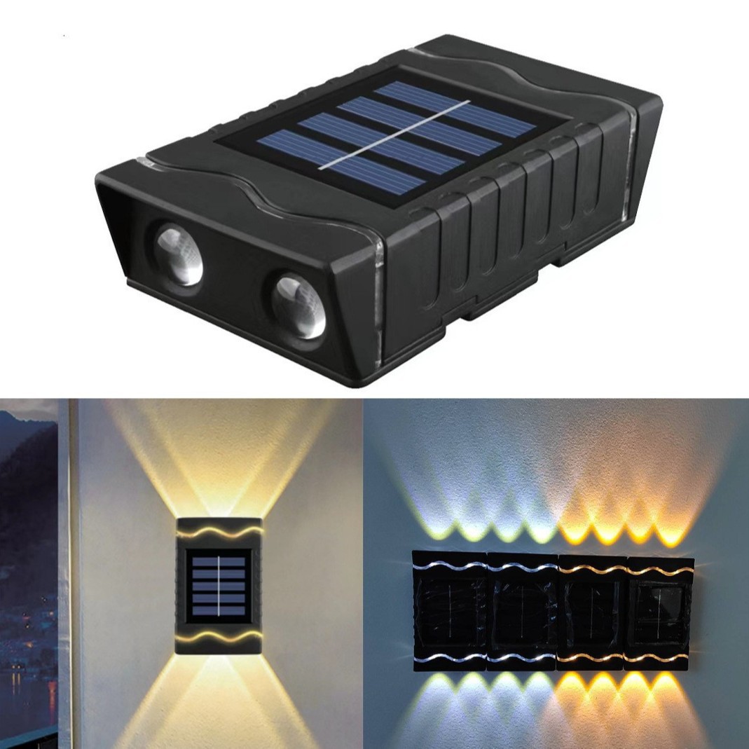 太阳能透镜壁灯洗墙灯户外庭院壁灯花园氛围灯凸透镜上下发光射灯