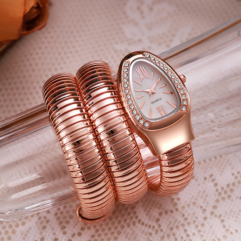 跨境蛇形手表 女士时尚手镯表 创意嘻哈石英表个性手镯表批发