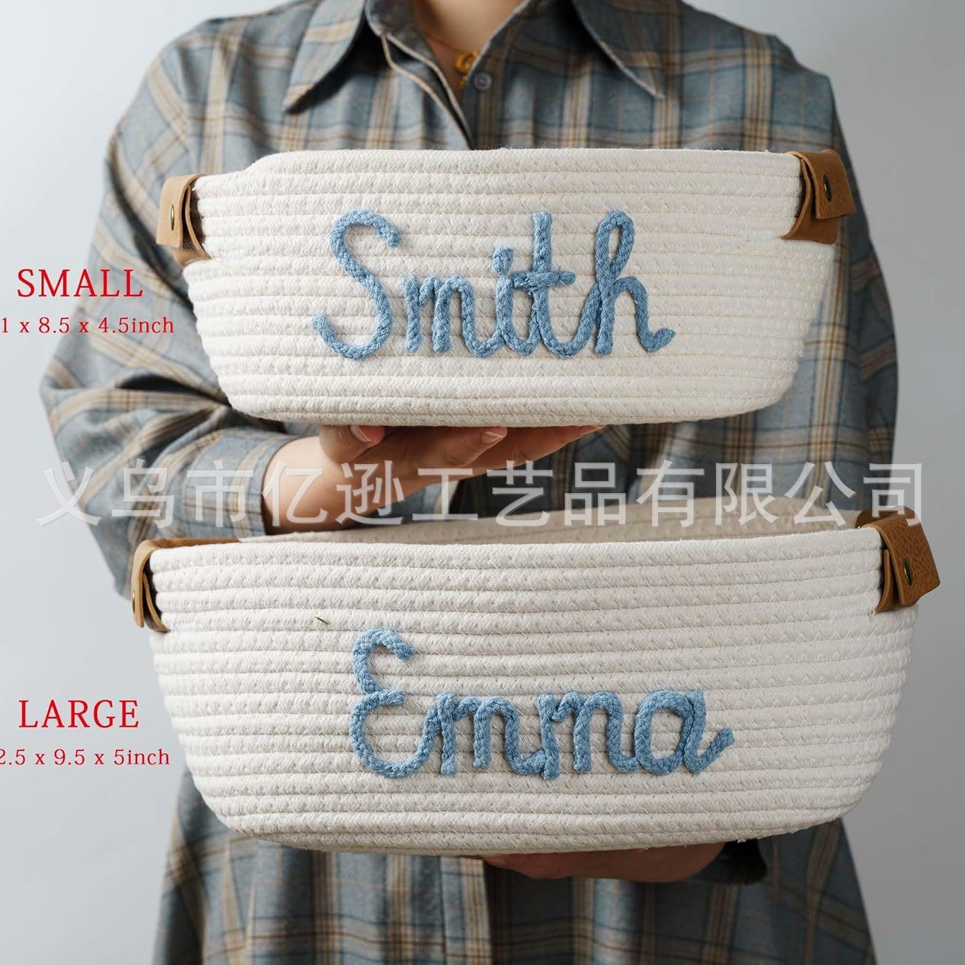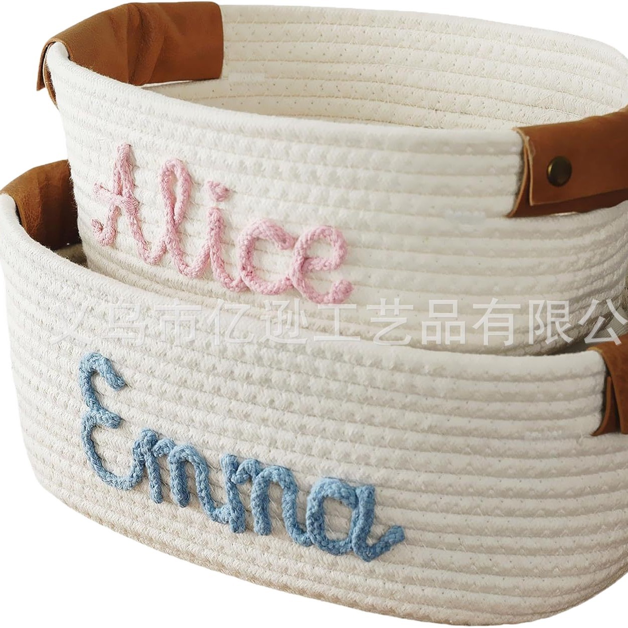 源头工厂Etsy热销可爱风棉绳收纳篮个性化名字玩具书籍杂志收纳筐