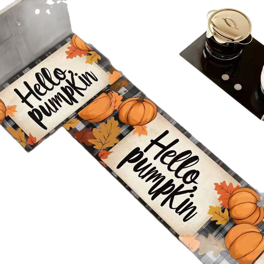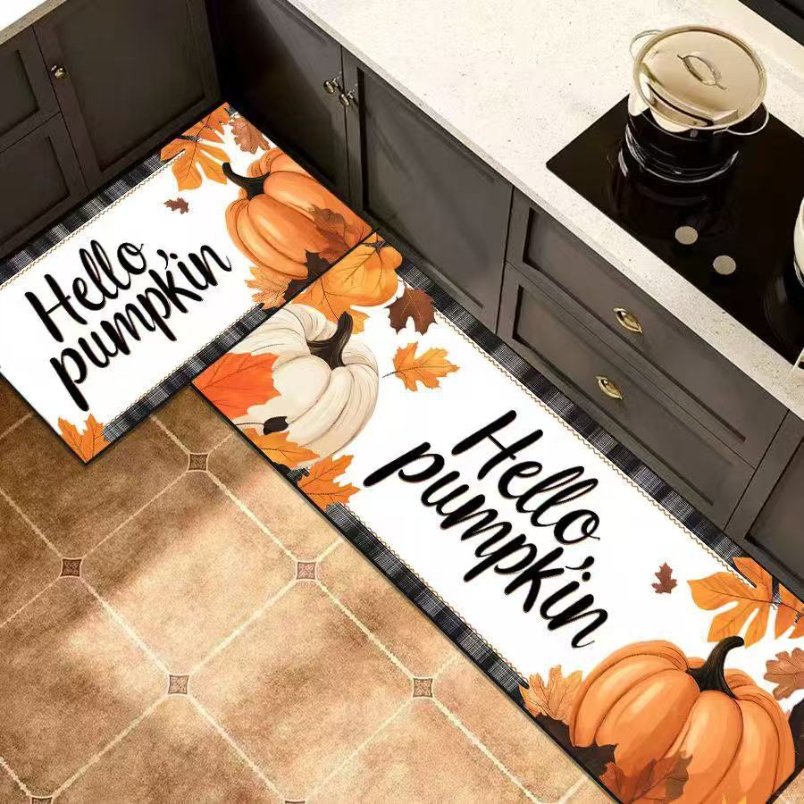 TEMU代发南瓜地垫万圣节装饰地垫厨房地垫两件套耐脏吸油长条脚垫