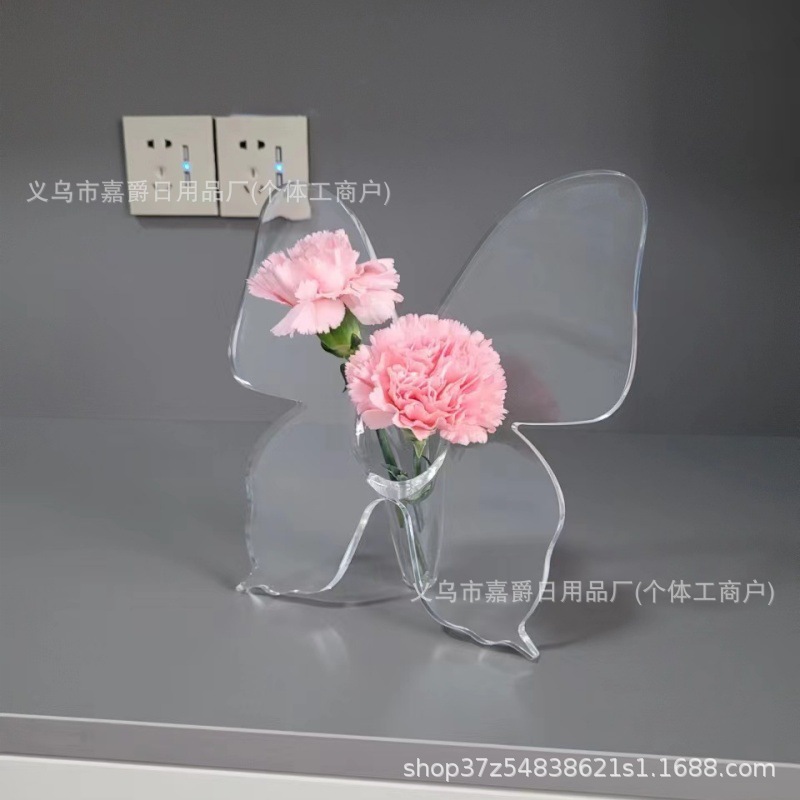 蝴蝶花瓶跨境专供ins风现代简约亚克力蝴蝶花瓶花插客厅卧室摆件