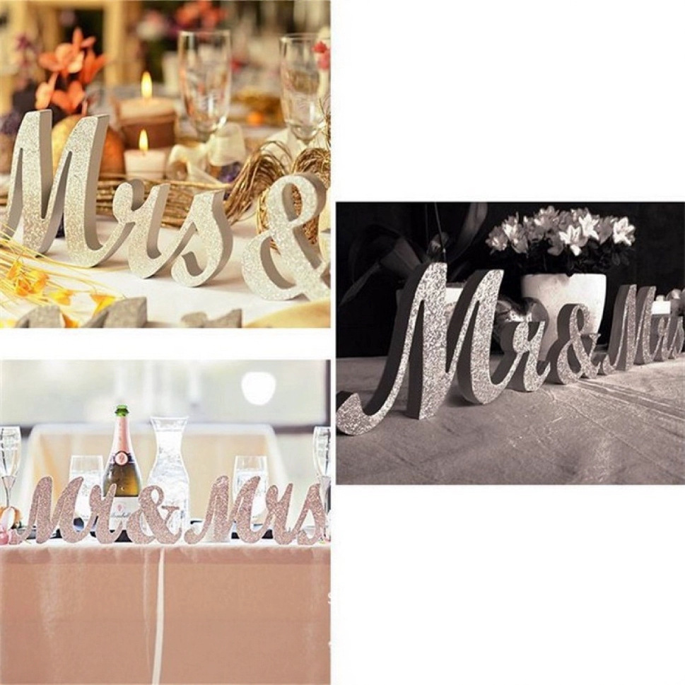 情人节、婚礼木质亮粉摆件Mr & Mrs木制字母标志婚礼派对桌子桌面