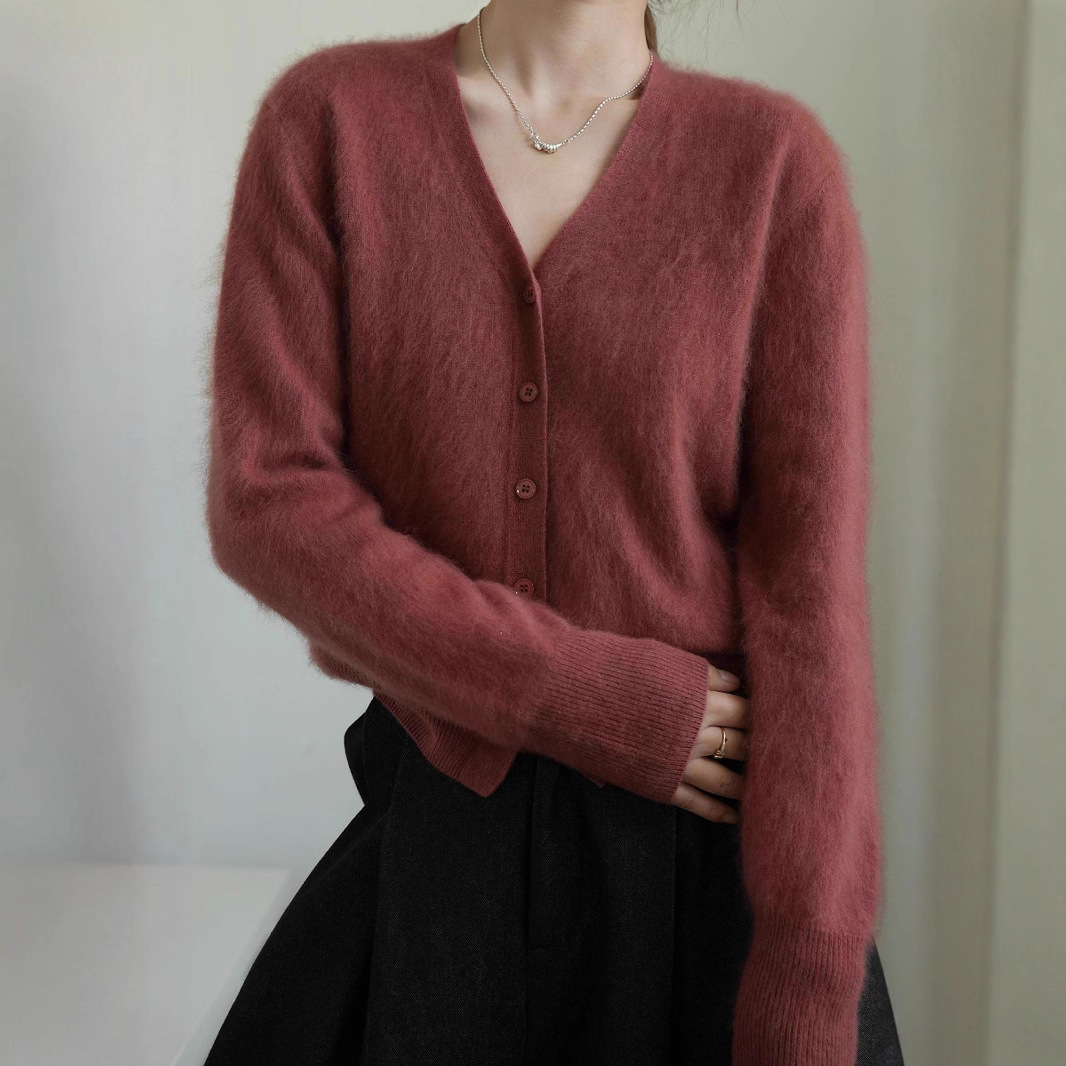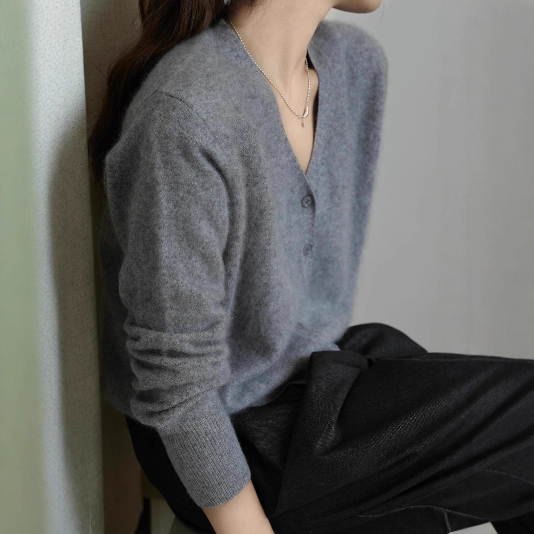 100%羊毛V领开衫拉绒不掉毛拉毛女秋冬舒适气质百搭外套文艺长袖