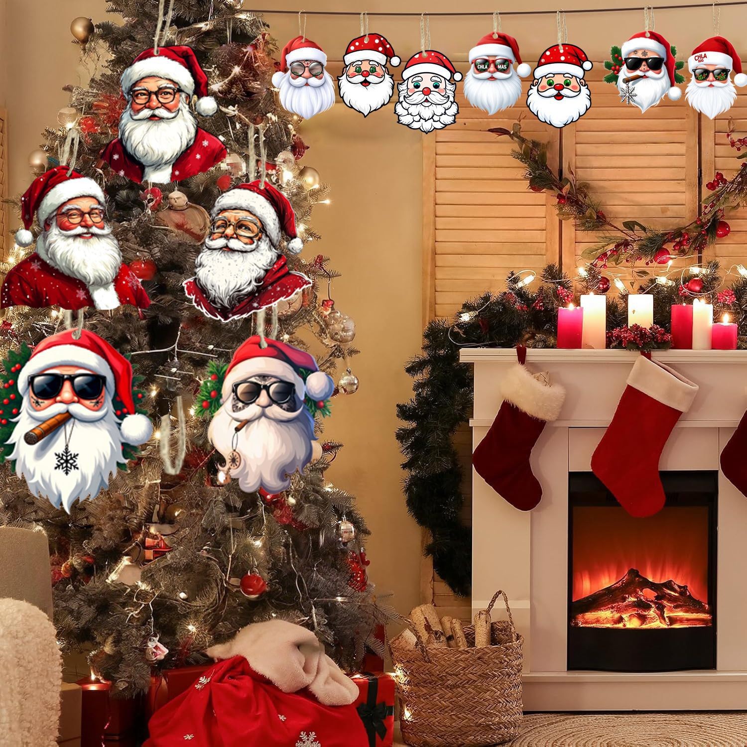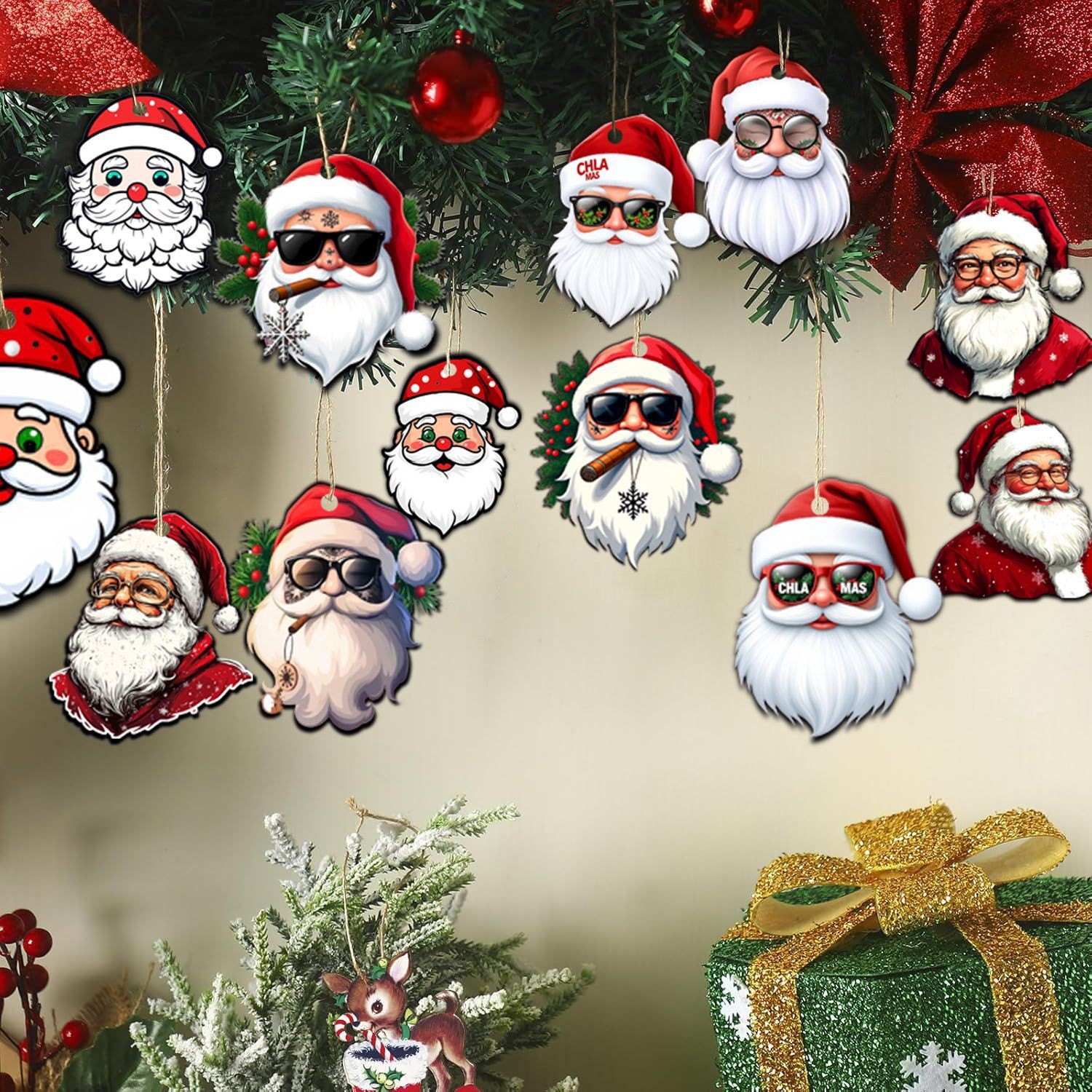 跨境新品36件圣诞老人木质悬挂装饰创意圣诞派对家居节日布置道具