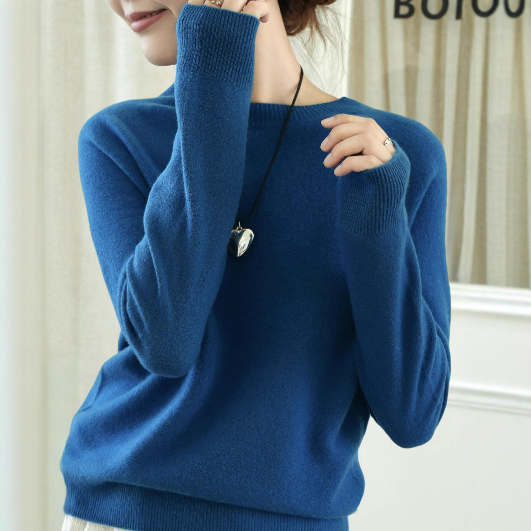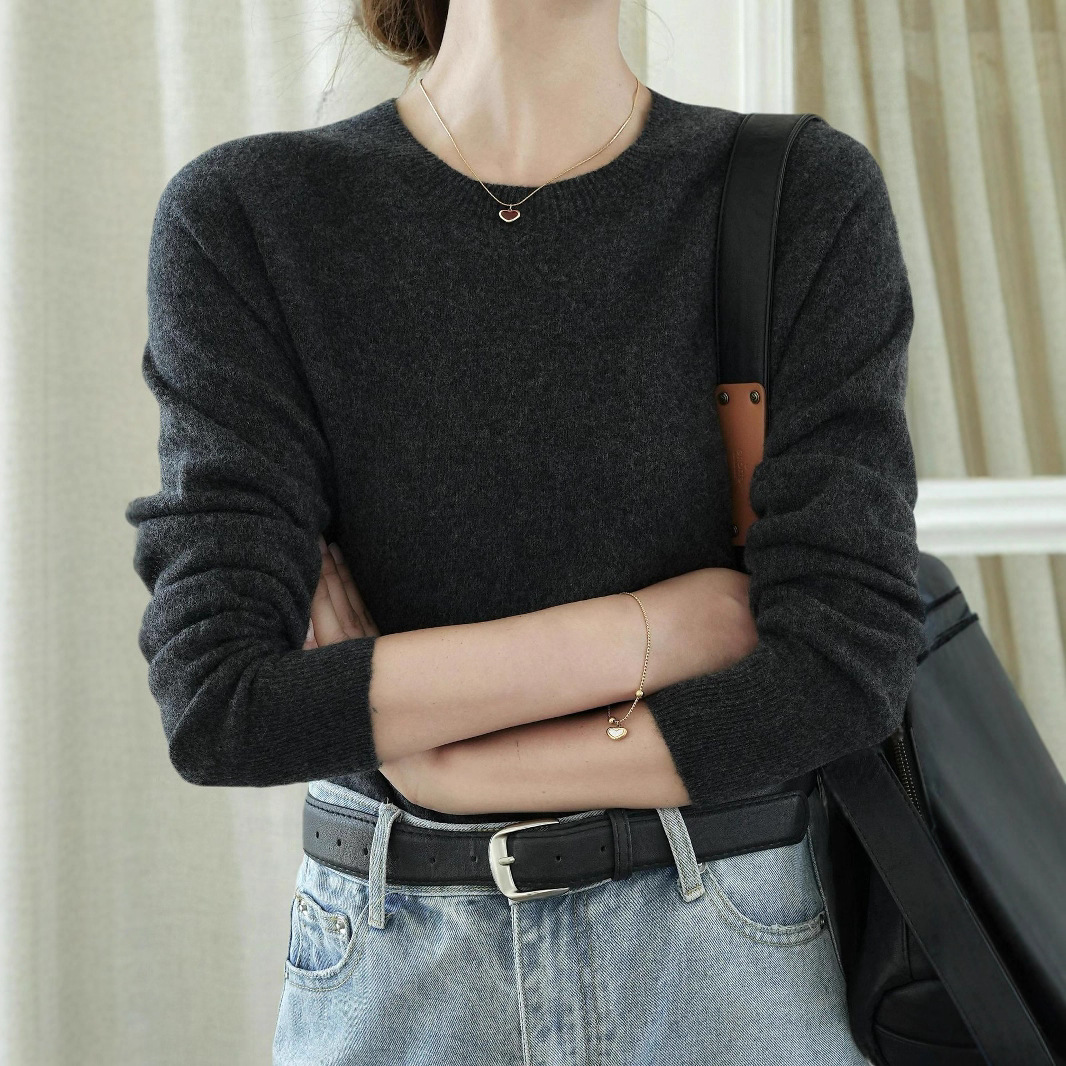 2025纯色打底秋冬5羊绒95羊毛圆领针织套衫毛衣厂家直销休闲百搭