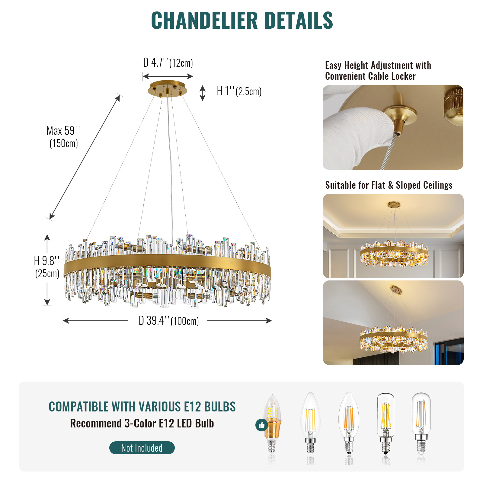 电压 | 110-220v | 灯光颜色 | 金色边圆型水晶条吊灯24头 |