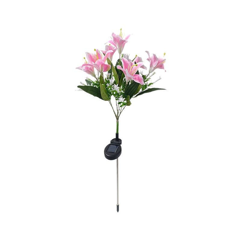 跨境户外庭院花园装饰草坪地插灯LED花灯新款7头太阳能百合花灯
