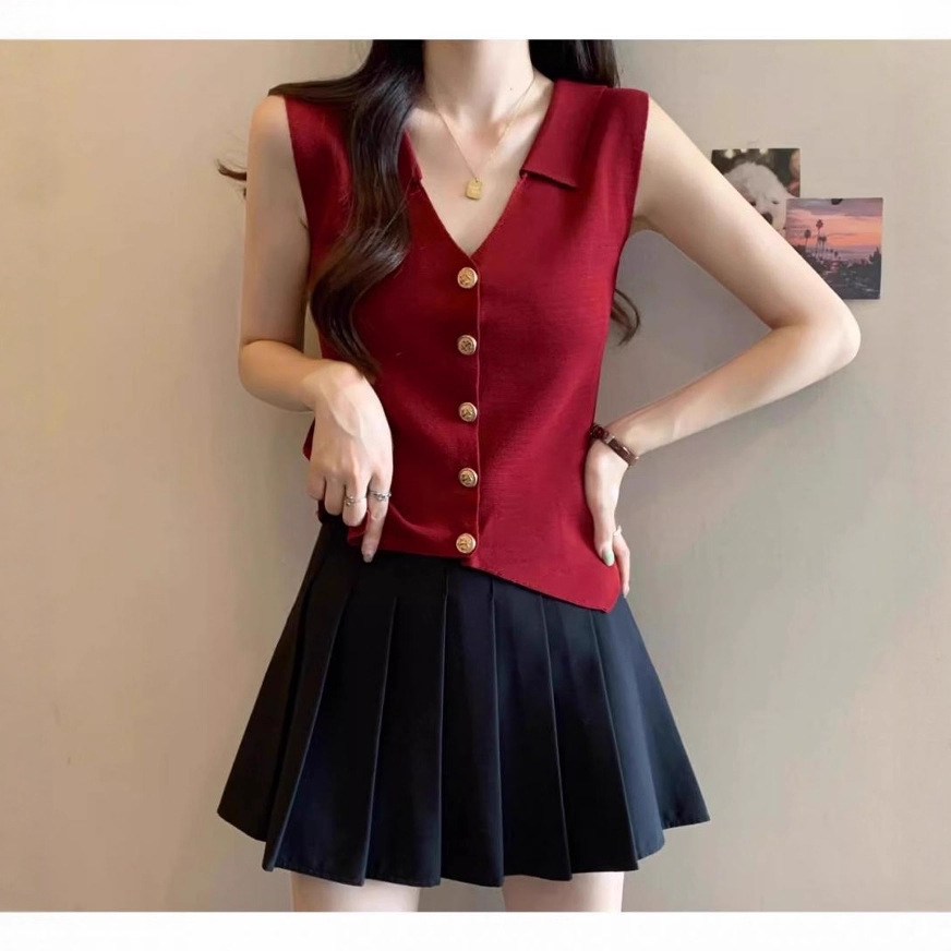 法式复古V针织衫背心马甲薄款夏季外搭马圆领开衫无袖显瘦短款