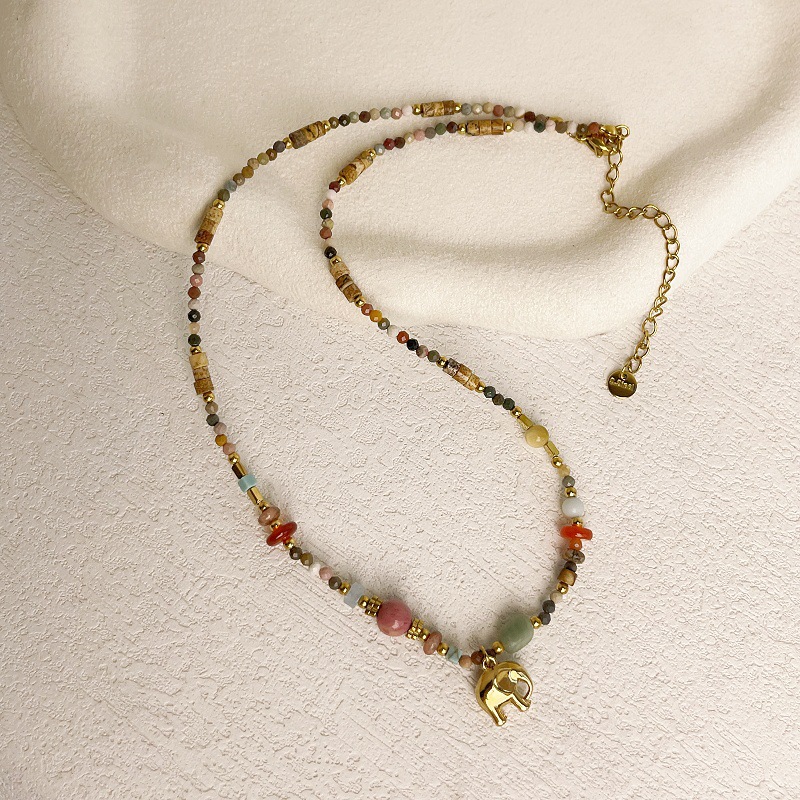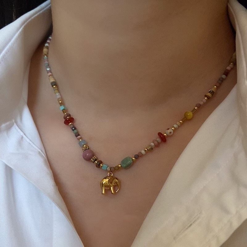 吴昕同款大象吊坠彩色多巴胺天然石串珠项链女适合夏天轻奢小众女
