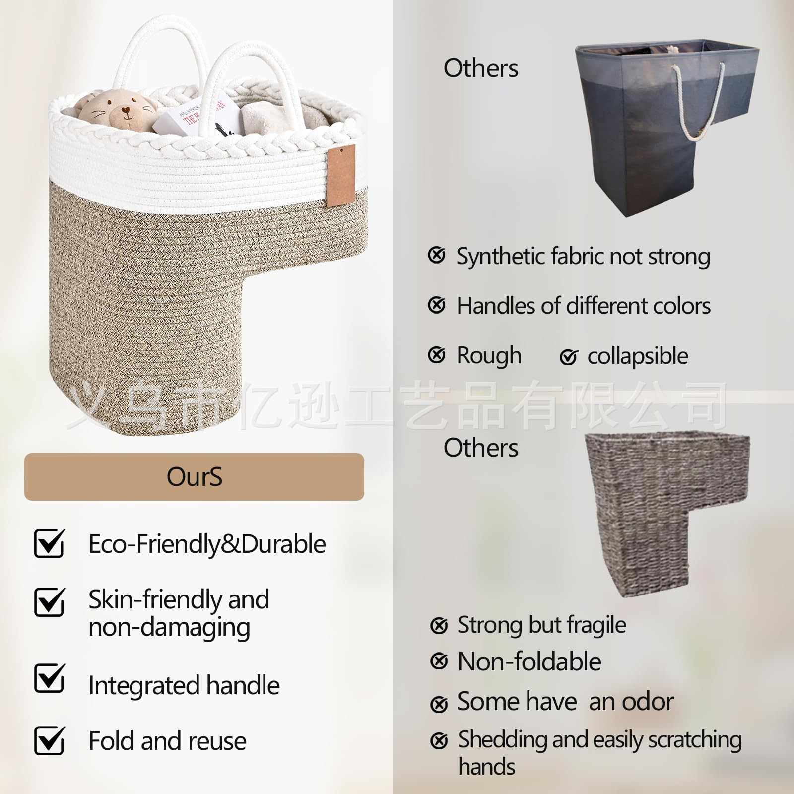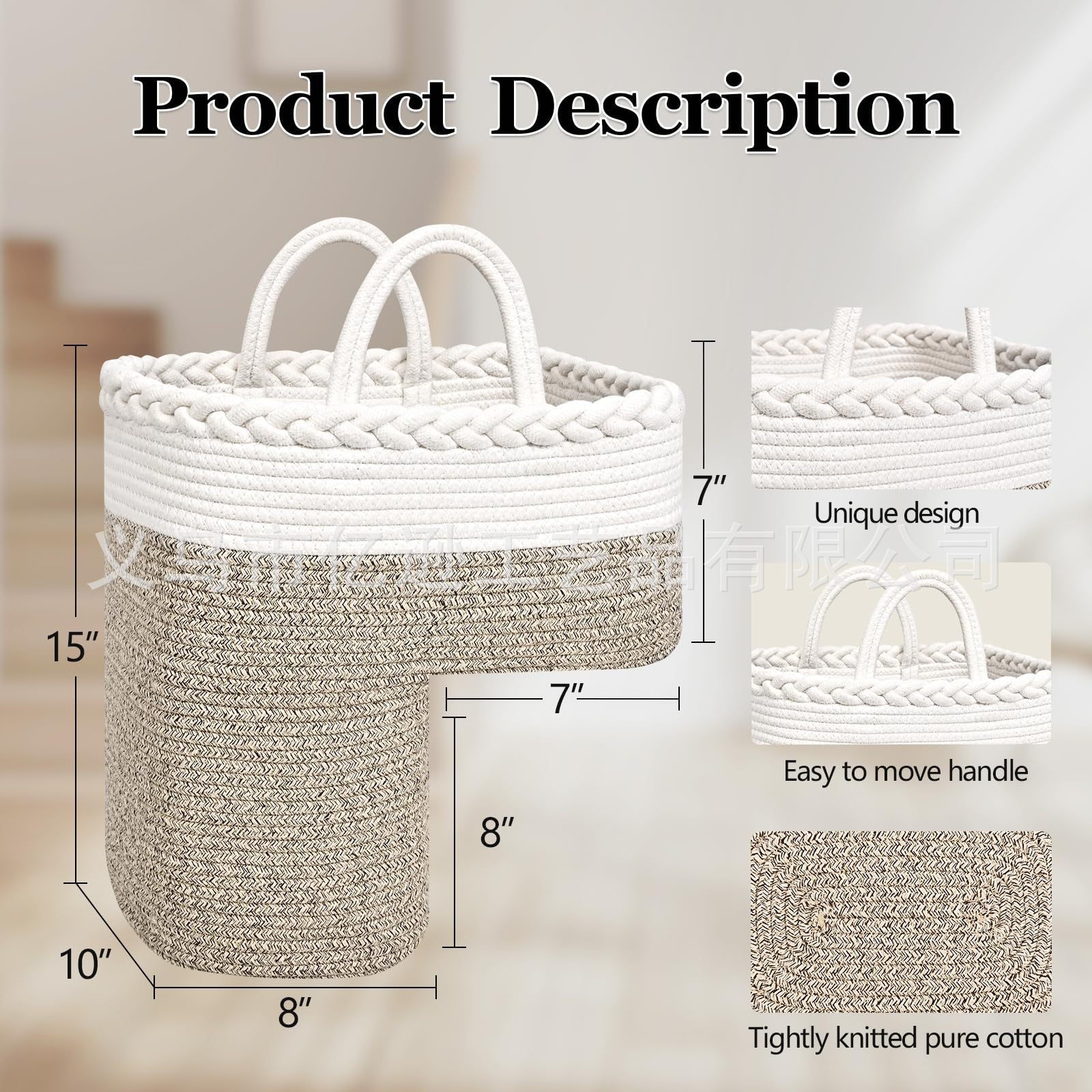 跨境新款L型多功能棉绳楼梯篮楼梯杂物玩具收纳篮大容量手提篮