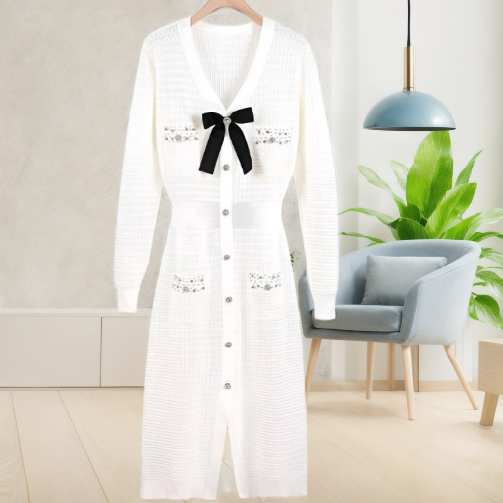 跨境2025秋冬高腰显瘦针织连衣裙中长款法式木耳领百搭打底裙女装