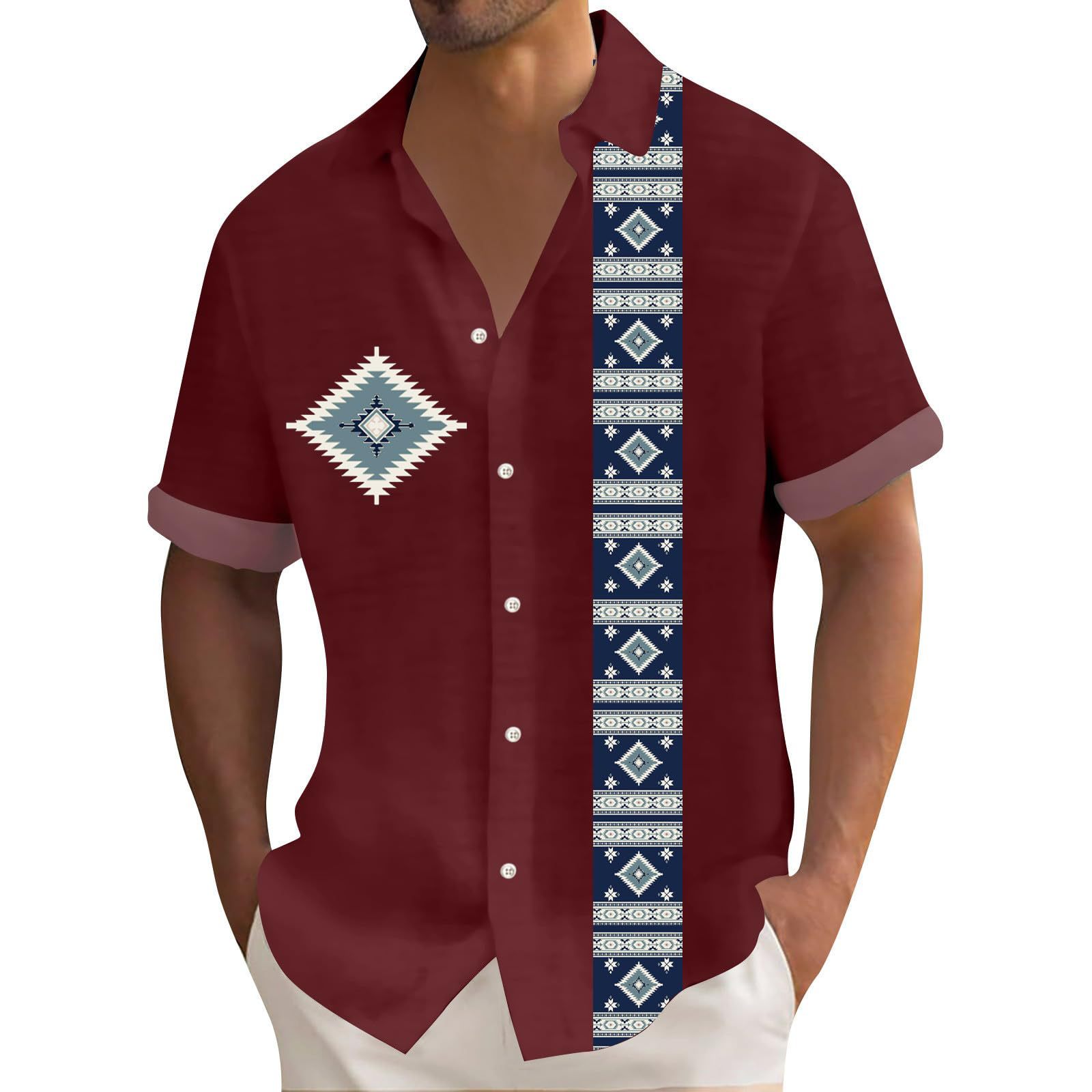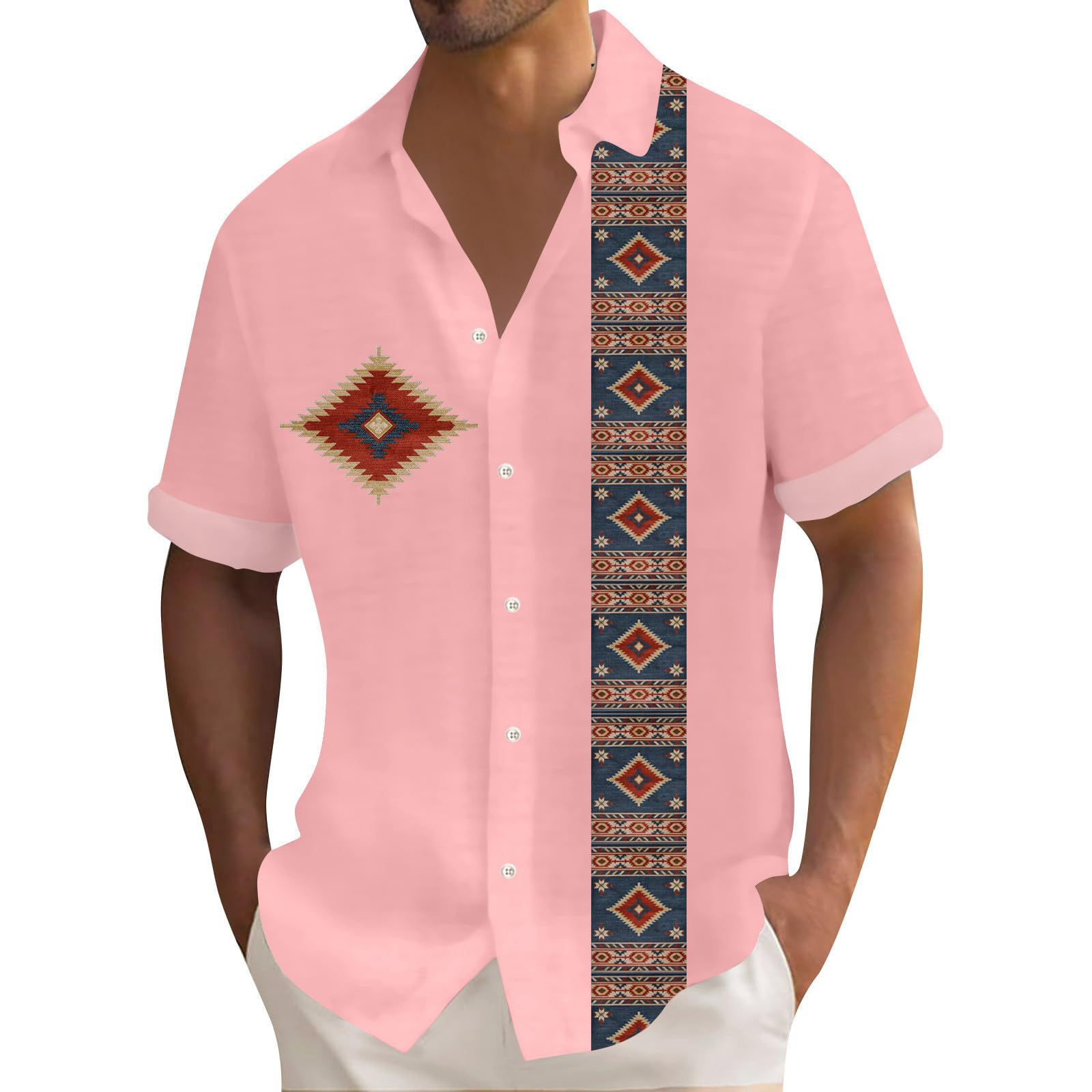 男士夏威夷衬衫 花卉条纹休闲宽松衬衣夏季沙滩上衣短袖