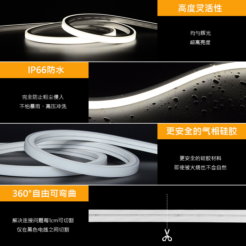 跨境一体挤出柔性户外防水硅胶灯带工程亮化正发光软灯条定制批发