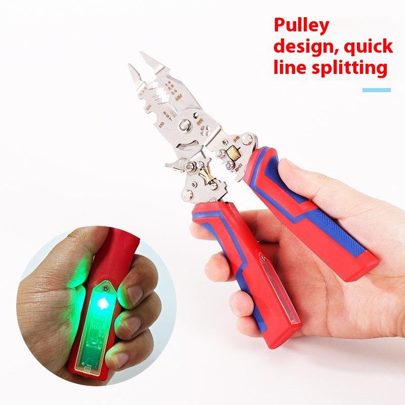 电工用9合1多功能折叠电笔钳剥线钳剪线电缆多用扒线压线分线钳子