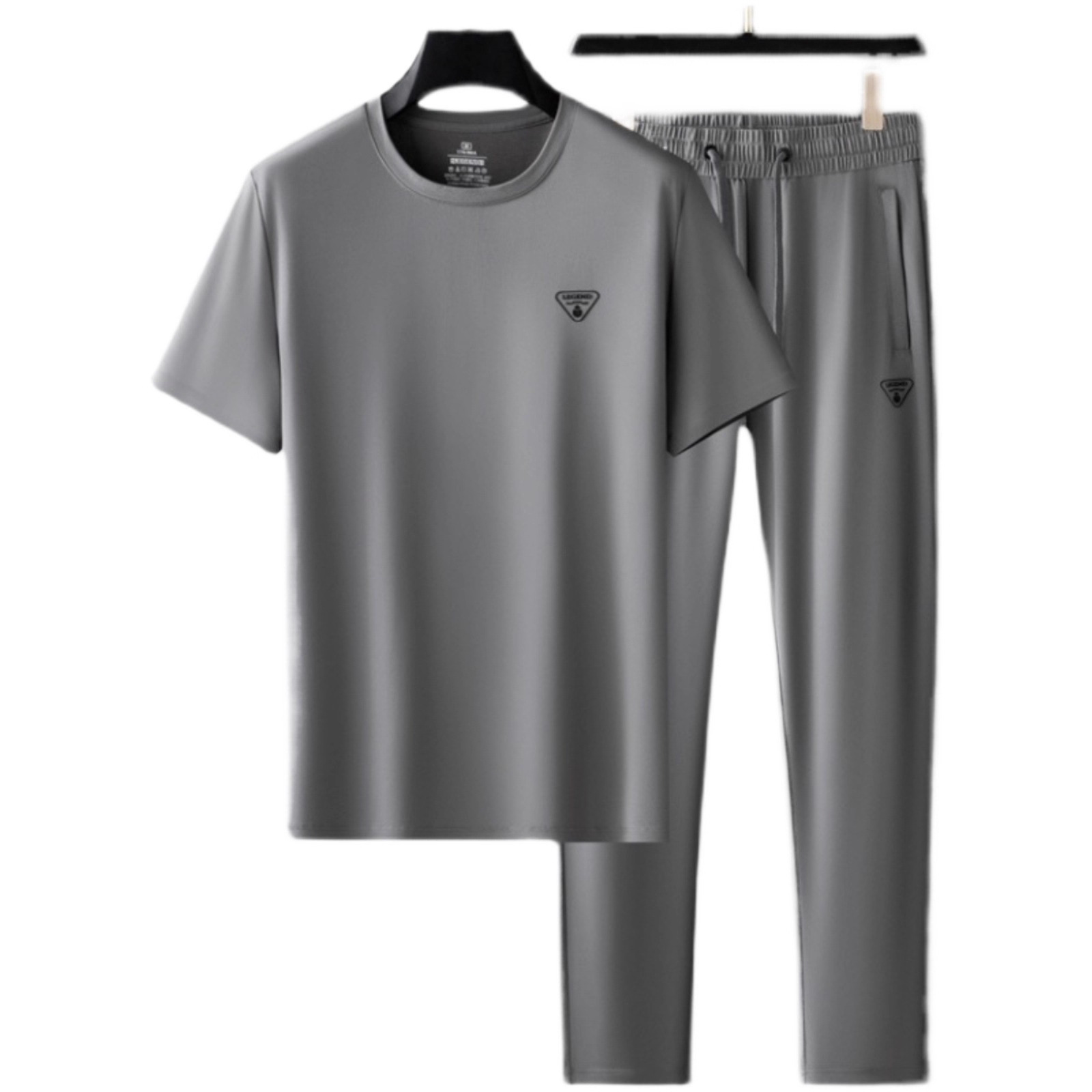 四面弹2025休闲运动套装男夏季薄款短袖宽松裤子中年男士两件批发
