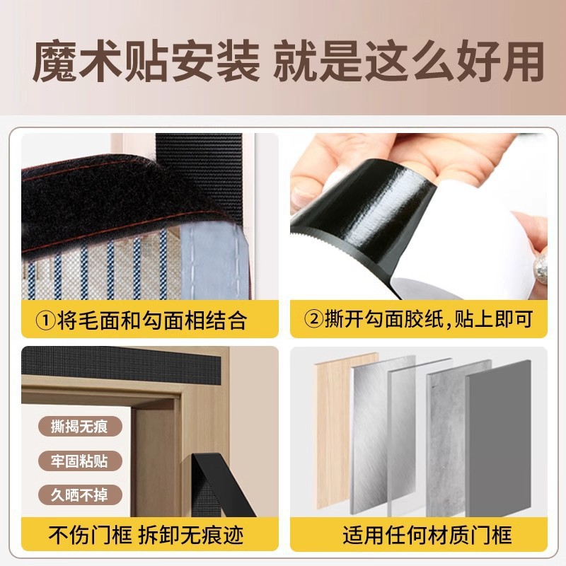 门帘类型 | 纱门 | 颜色 | 黑色条纹+魔术贴+图钉 |