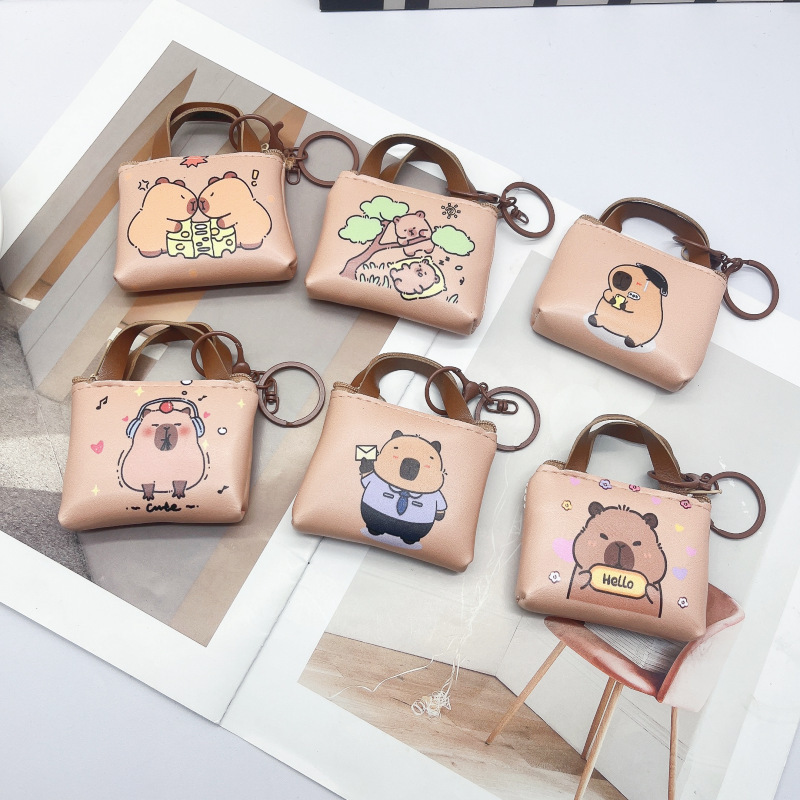 2025跨境可爱创意卡皮巴拉零钱包 迷你儿童书包钥匙扣挂件小钱包
