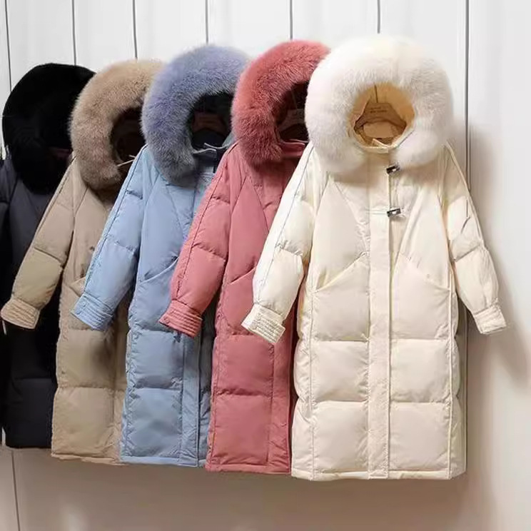 冬季新款白鸭绒羽绒服女装长款过膝面包服韩版外套女品牌批发货源