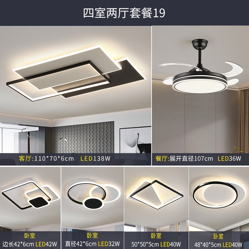 光源功率 | 4室2厅—套餐19(客厅110*70CM/餐厅配风扇灯) | 光源功率 | 长方—90*60CM |