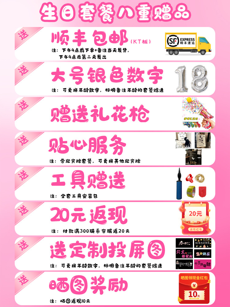 尺寸 | 生日布置套餐16款带爱心迎宾牌 | 尺寸 | 生日布置套餐14款 |