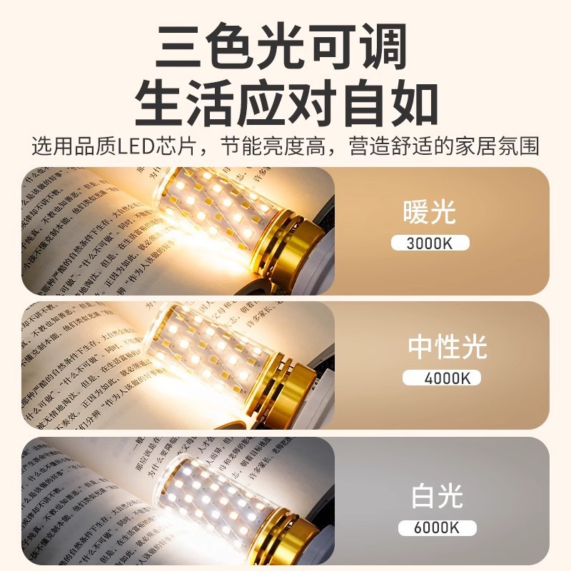 全光谱三色变光玉米灯水晶灯超亮强灯泡E14E27小螺纹家用吊灯护眼