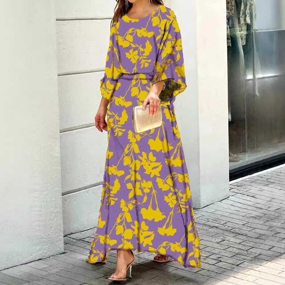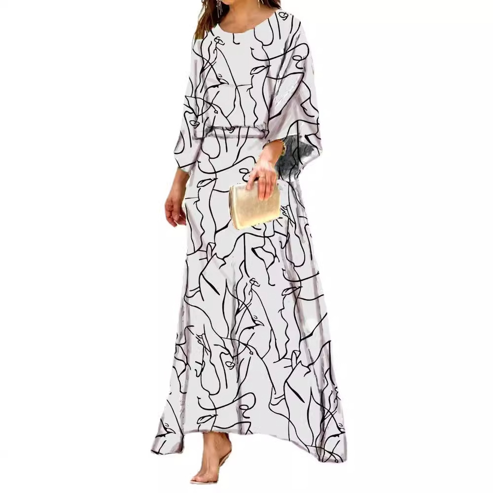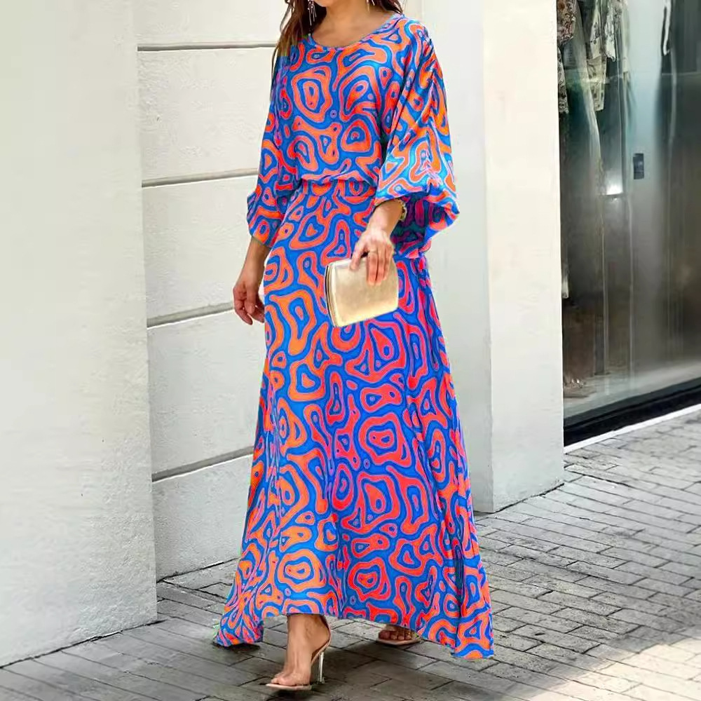 2024跨境欧美女装秋季新款宽松印花长袖上衣高腰半身大码长裙套装