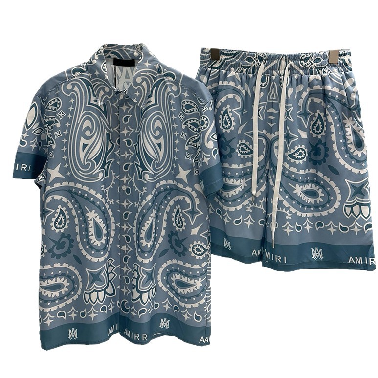 2025夏季跨境外贸数码印花男士短袖衬衫短裤套装休闲百搭休闲时尚