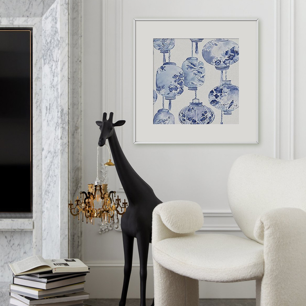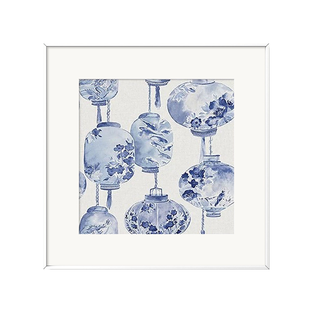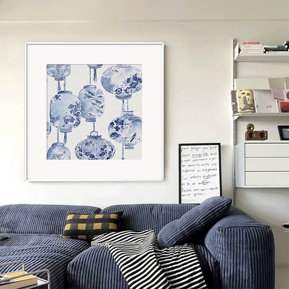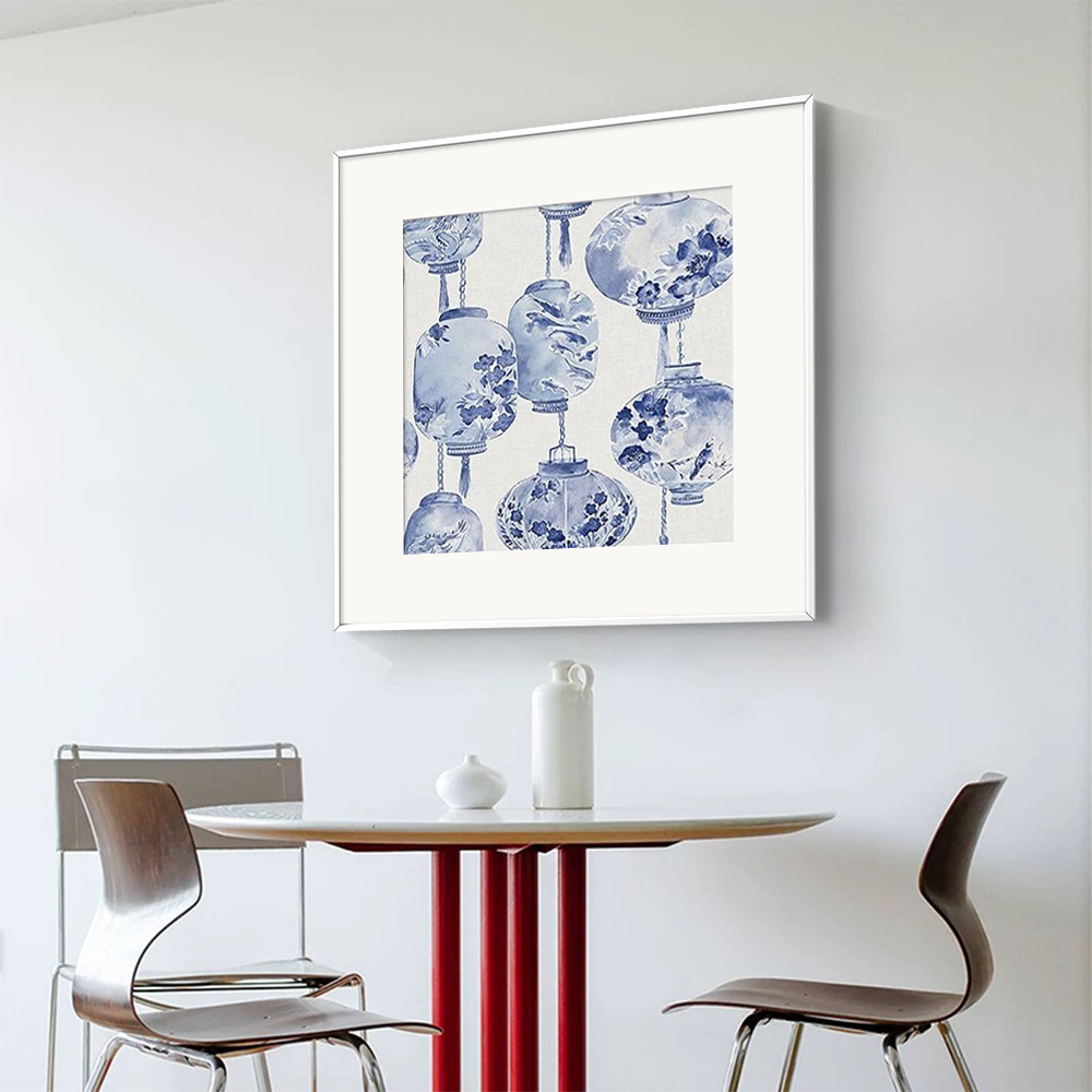 《青花灯笼》新中式装饰画客厅餐厅静物油画玄关柜背景墙方形挂画