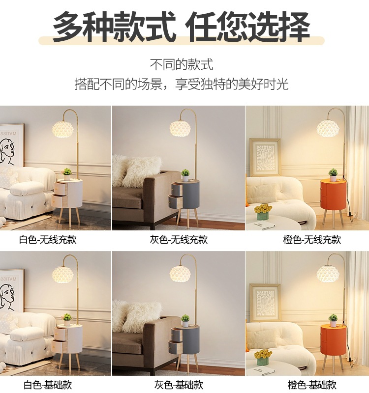 卧室落地灯客厅沙发边几光奶油风氛围感复古置物架床头柜一体台灯