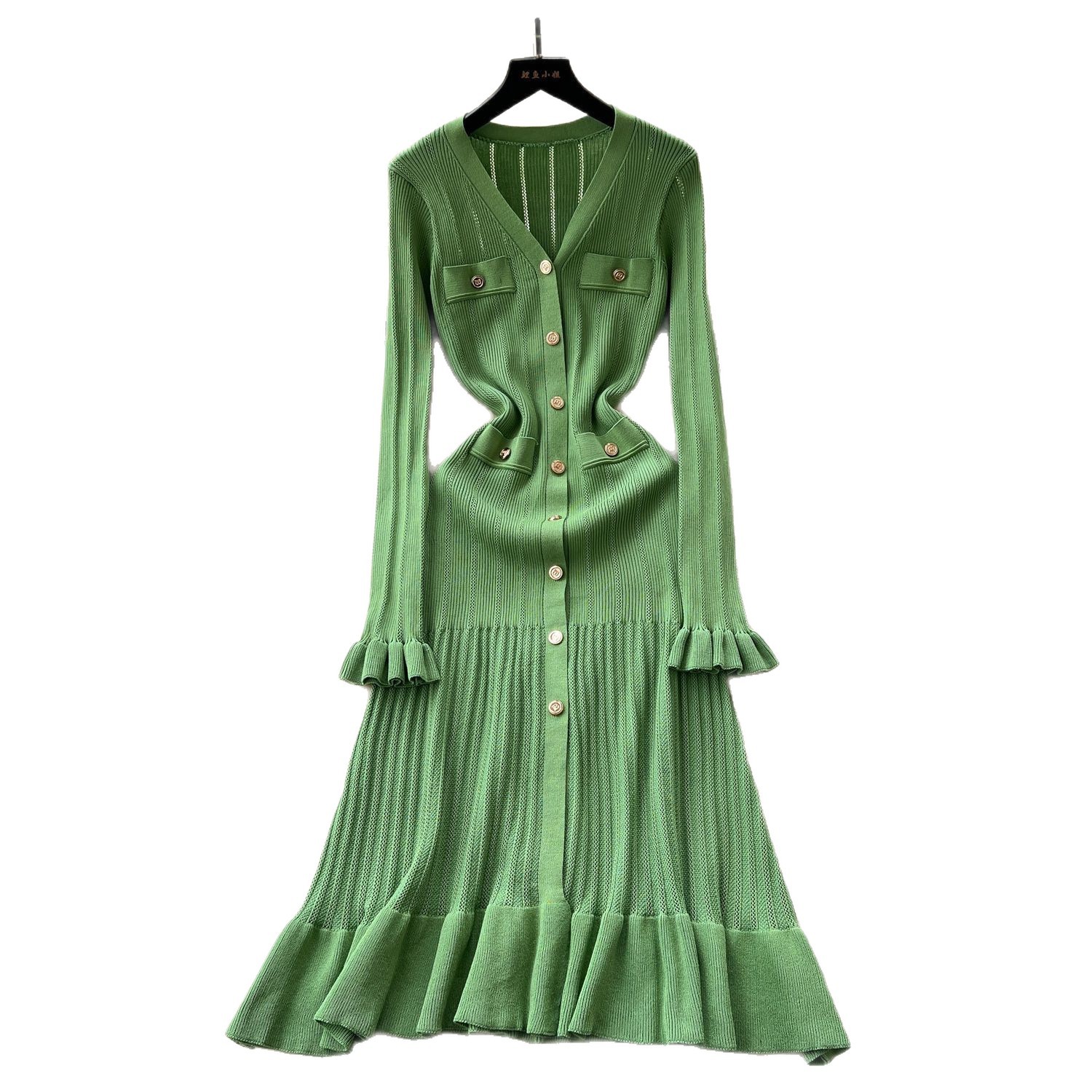 裙类别 | 连衣裙 | 1 | 2025年跨境速卖通新款爆款 秋冬新款法式气质名媛1感针织连衣裙女收腰显瘦荷叶边毛衣裙子 |