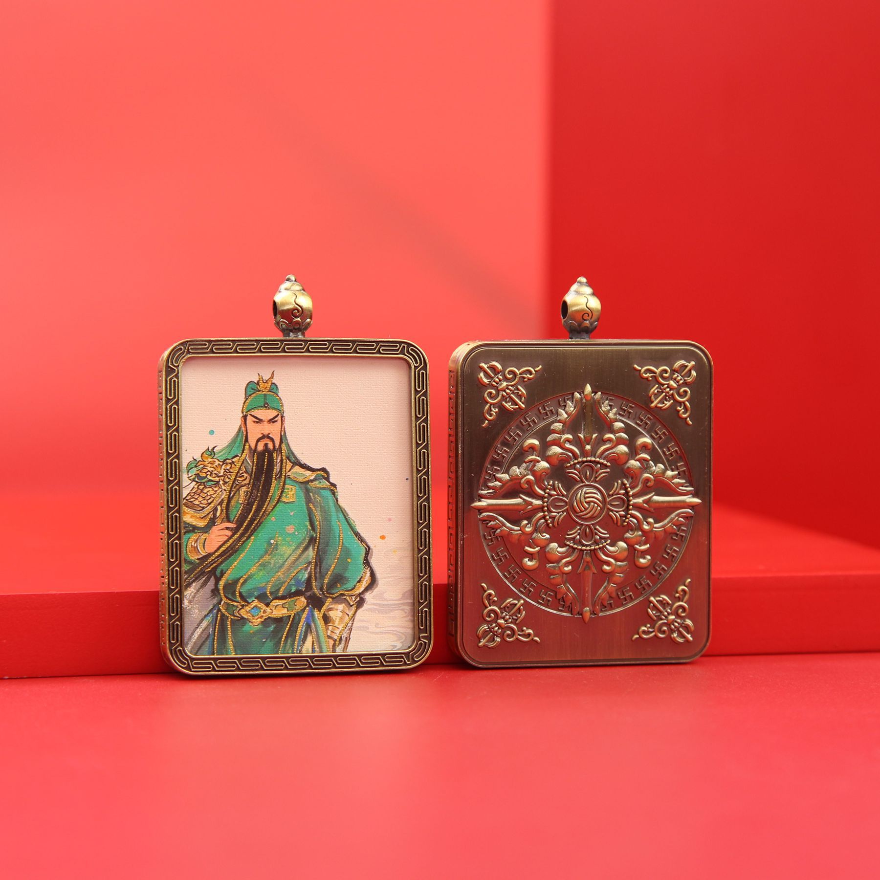 关公关老爷唐卡描金画像男士装饰品中式复古项链吊坠青龙偃月刀