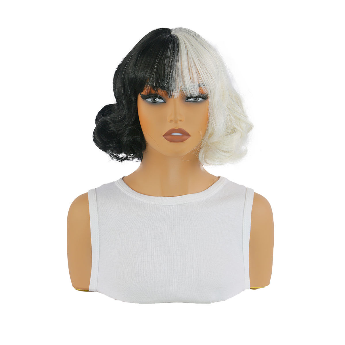 跨境外贸欧美假发女短卷发黑白魔女库伊拉cos造型阴阳厂家批发